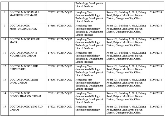Bên cạnh việc thu hồi số tiếp nhận phiếu công bố, Cục Quản lý Dược cũng đình chỉ lưu hành và thu hồi trên toàn quốc tất cả các lô còn hạn sử dụng của 162 sản phẩm mỹ phẩm theo danh mục tại Phụ lục 2. Các sản phẩm này được sản xuất tại nhiều cơ sở ở Trung Quốc như Guangzhou YRM Biotechnology Co., Ltd; Hong Kong Maika Biotechnology Limited; Guangzhou ODDIS Cosmetics Co., Ltd; Guangzhou Bolin Cosmetics Co., Ltd; Beiyue Pharmaceutical (Guangdong) Co., Ltd; Guangzhou Huiying Cosmetics Co., Ltd; Guangzhou Zhengqi Medical & Biological Technology Co., Ltd… và được MK Skincare đưa ra thị trường Việt Nam.