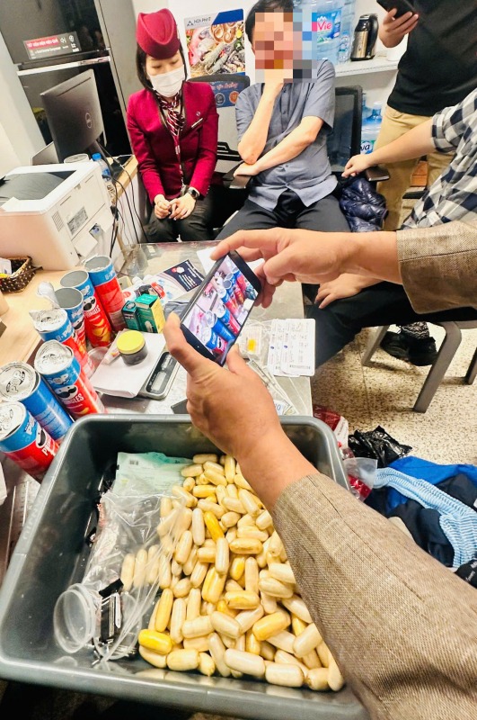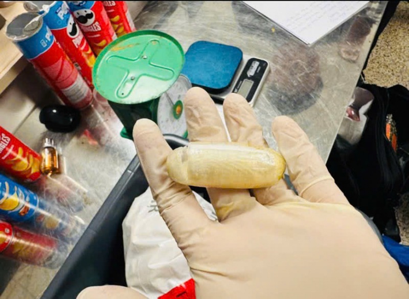 Qua kiểm tra hành lý, lực lượng chức năng phát hiện khoảng 3,6 kg (cả bao bì) chất bột màu trắng nghi là ma túy, được ngụy trang, cất giấu tinh vi trong đồ dùng cá nhân nhằm qua mặt cơ quan kiểm soát. Theo ghi nhận, số ma tuý được ngụy trang trong các hộp bim bim, trong các đồ dùng cá nhân khác, trong hộp bim bim là các viên con nhộng... Kết quả giám định sơ bộ xác định mẫu vật dương tính với ma túy loại cocain.