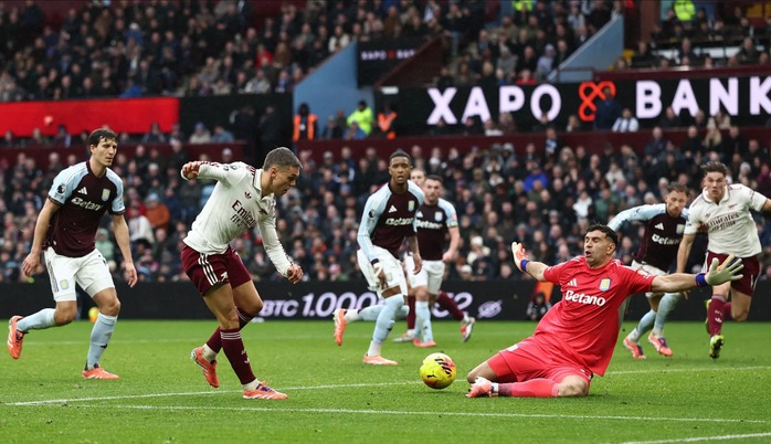 Hai đội nhập cuộc đầy tốc độ và thủ thành đội chủ nhà Emiliano Martínez sớm phải trổ tài sau cú sút hiểm của Ødegaard. Ở đầu sân bên kia, David Raya trong khung gỗ Arsenal cũng xuất sắc cản phá pha xử lý gọn gàng của Ollie Watkins trong vòng cấm.
