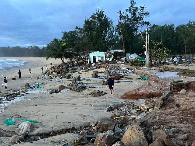 Triều cường dâng cao tàn phá nhiều công trình, nhà dân ven biển Quảng Ngãi