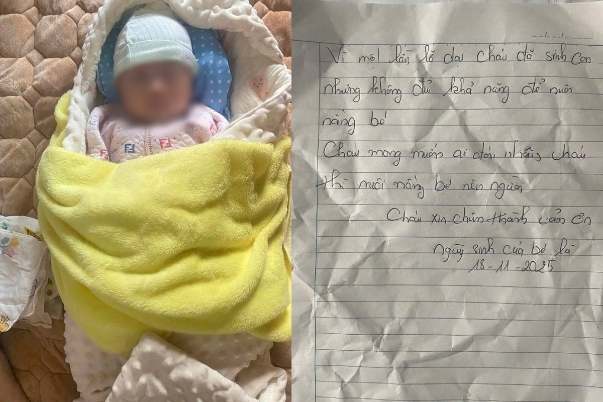 Đáng chú ý, trong giỏ nhựa còn có một tờ giấy ghi nội dung: “Vì một lần lỡ dại cháu đã sinh con nhưng không đủ khả năng để nuôi nấng bé. Cháu mong muốn ai đón nhận cháu thì nuôi nấng bé nên người. Cháu xin chân thành cảm ơn. Ngày sinh của bé là 18/11/2025”.