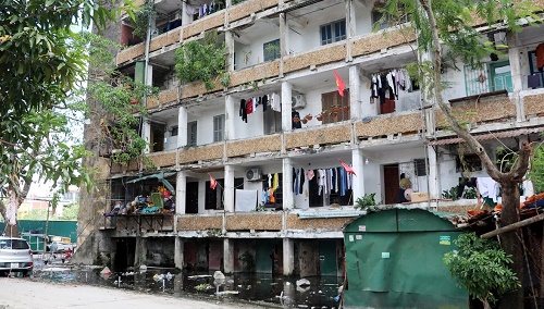 Khu chung cư Quang Trung sau gần nửa thế kỷ đã xuống cấp nghiêm trọng, trở thành “điểm nóng” mất an toàn nhà ở, khiến hàng trăm hộ dân luôn bất an mỗi mùa mưa bão.