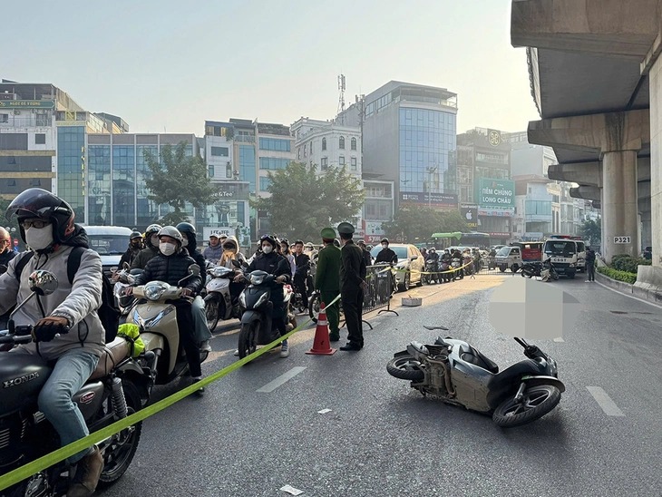Khi tới gần nút giao đường Nguyễn Văn Huyên, nam thanh niên tăng tốc xe máy để vượt qua một số xe khác thì xảy ra va chạm và bị một xe bán tải đi cùng chiều cán trúng.