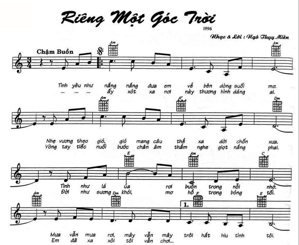 Lời ca khúc Riêng Một Góc Trời. |