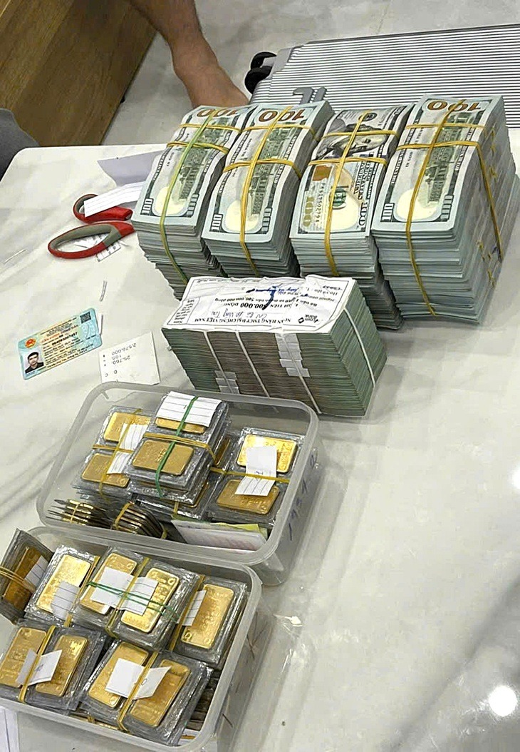 Một phần số tiền, vàng bị công an thu giữ - Ảnh: CACC |