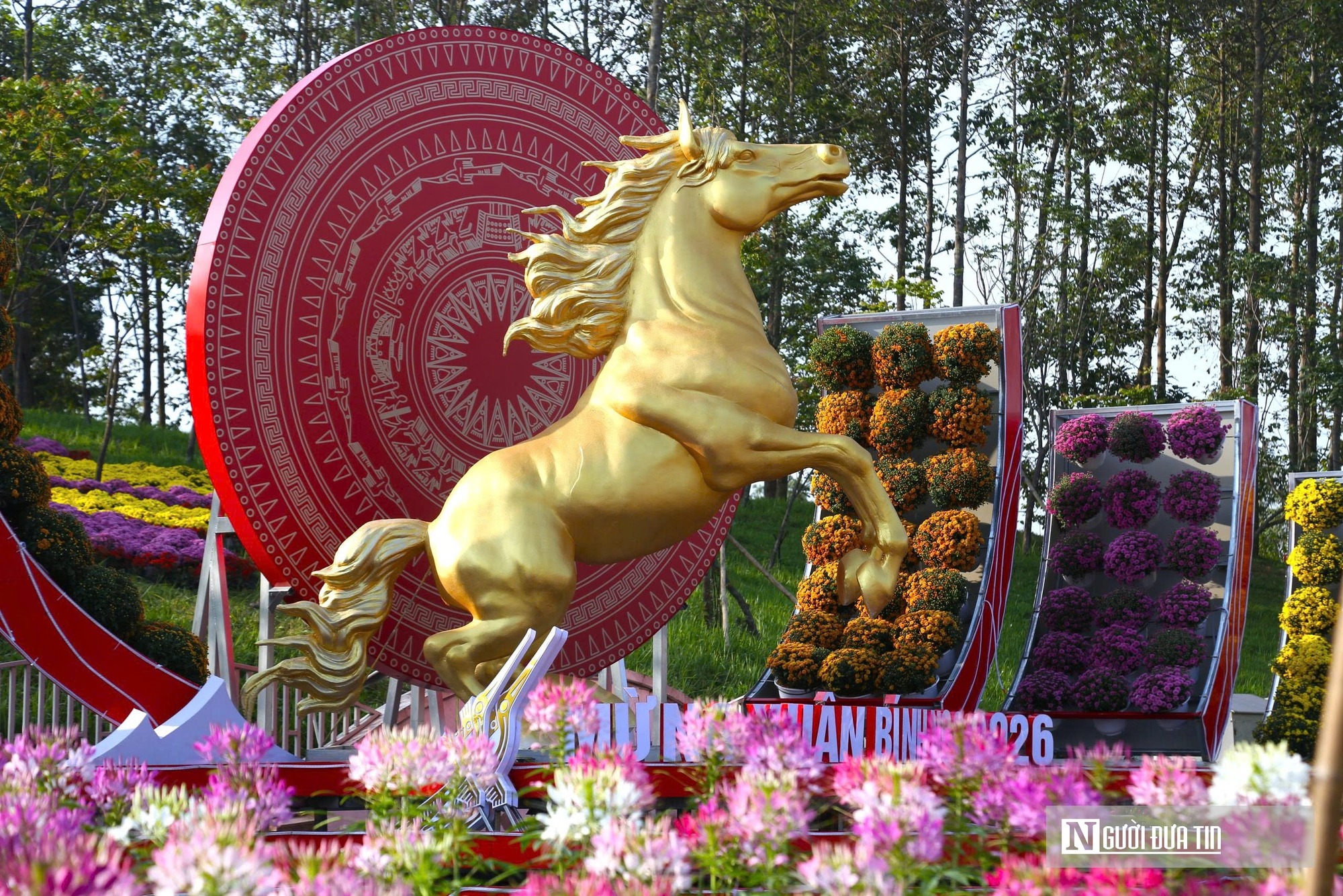 Sau một đêm cật lực lắp ghép, ngày 13/2, (tức 26 tháng Chạp), linh vật ngựa vàng chào đón Tết Bính Ngọ đã được hoàn thiện lắp đặt tại phố đi bộ đường Hồ Tùng Mậu, phường Trường Vinh, tỉnh Nghệ An. Hàng chục công nhân đã tất bật hoàn thiện những công đoạn cuối cùng để kịp đưa linh vật vào vị trí trưng bày, phục vụ nhân dân du Xuân, check - in dịp Tết. |