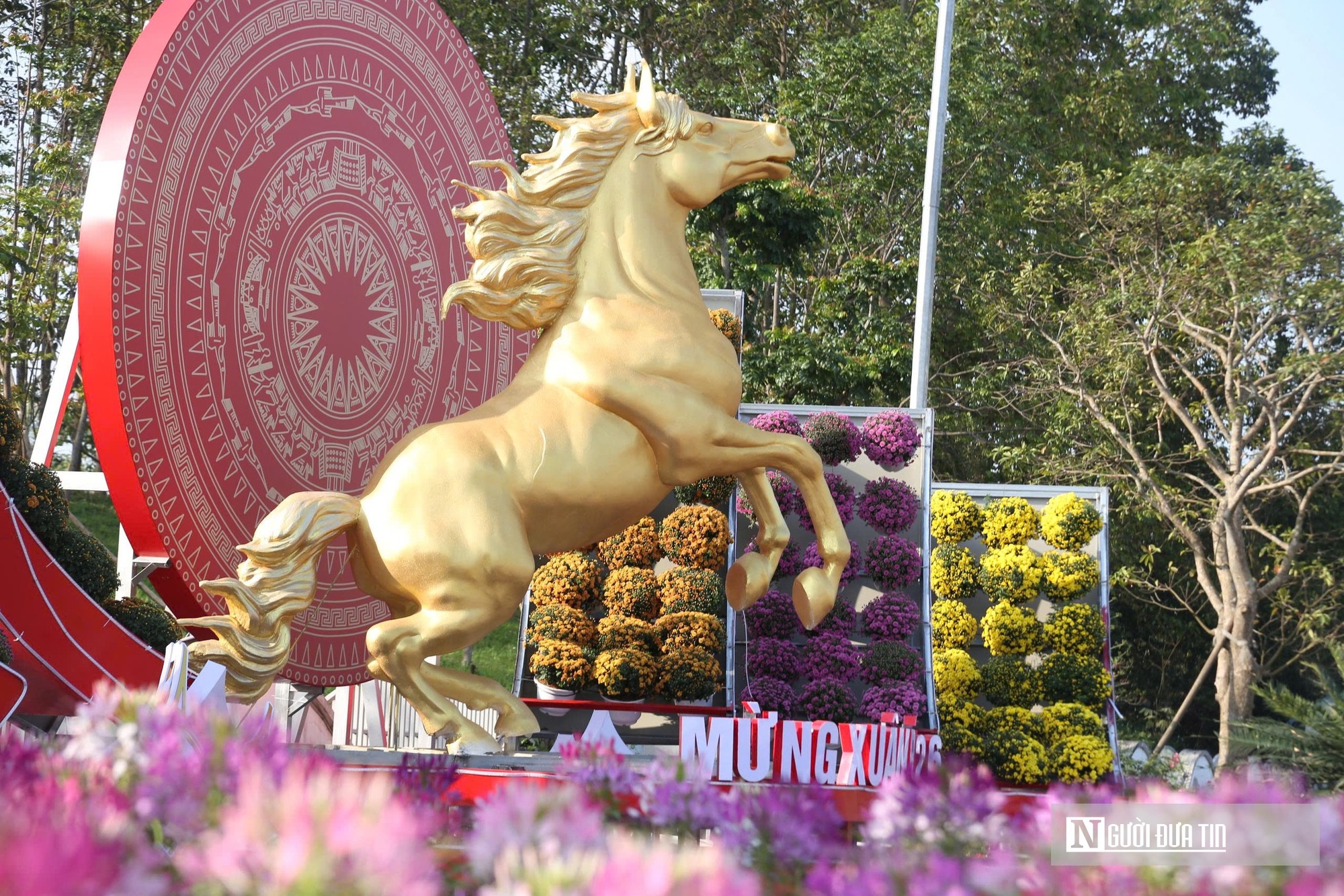 Theo đó, linh vật ngựa vàng năm nay có chiều cao khoảng 4 mét, toàn thân được sơn màu vàng đồng ánh kim. |