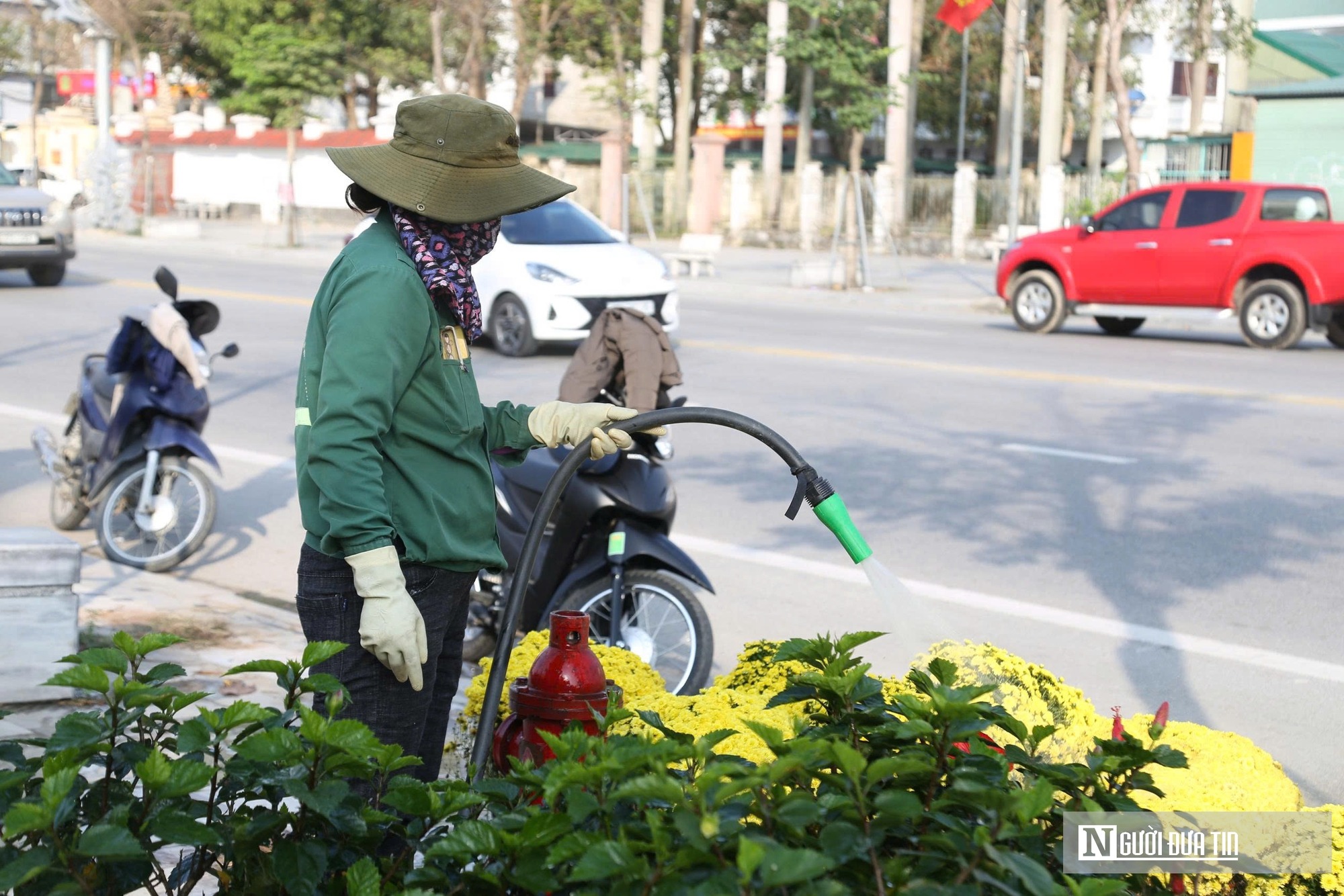 Tuyến đường hoa ở đường Hồ Tùng Mậu cũng đang được các công nhân gấp rút hoàn thành. Khu vực trung tâm tuyến đường với không gian lớn, có sân khấu cùng hàng trăm loài hoa khoe sắc. |