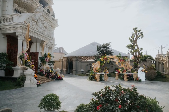 Không chỉ gây chú ý bởi cách bài trí tinh tế, lễ cưới còn khiến nhiều người choáng ngợp bởi địa điểm tổ chức. Dinh thự nhà trai vốn là một tòa lâu đài nguy nga, tráng lệ, nổi tiếng khắp Bến Tre bởi kiến trúc bề thế và quy mô rộng lớn.