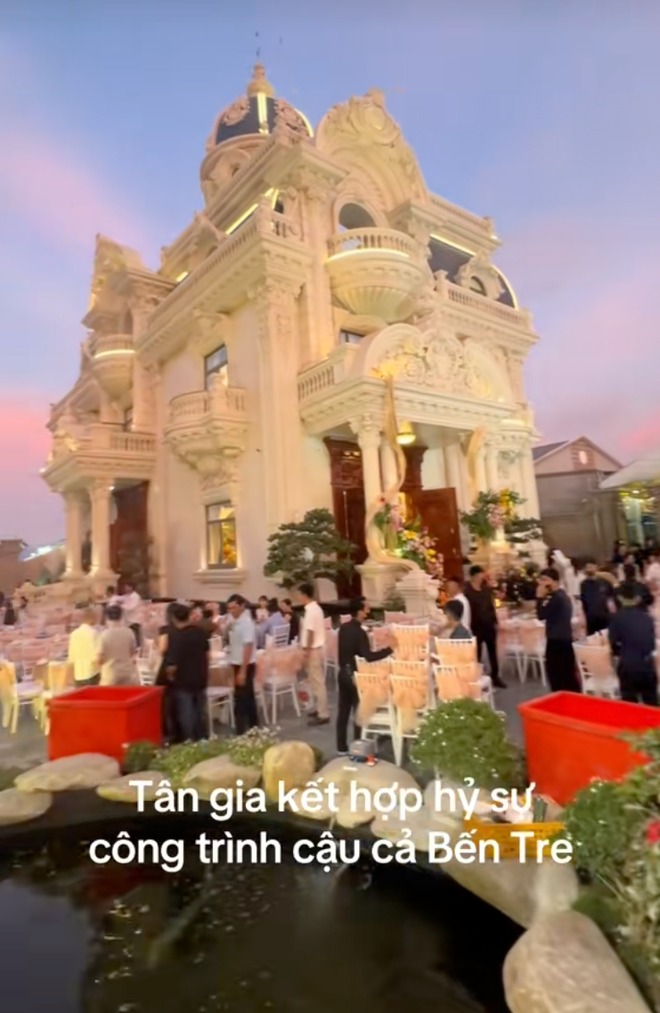 Việc đón tiếp đông đảo khách mời trong không gian lâu đài nguy nga, tráng lệ cũng được xem là dịp để gia đình chính thức ra mắt cơ ngơi bề thế, nổi bật giữa vùng đất Bến Tre, khiến nhiều người không khỏi ngưỡng mộ trước mức độ đầu tư và sự chỉn chu trong khâu tổ chức.