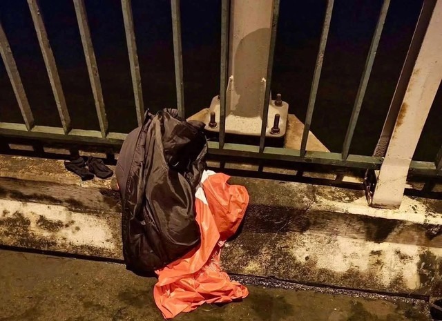 Những đồ dùng của nạn nhân để lại trên cầu trước khi nhảy xuống dòng sông Lam. |