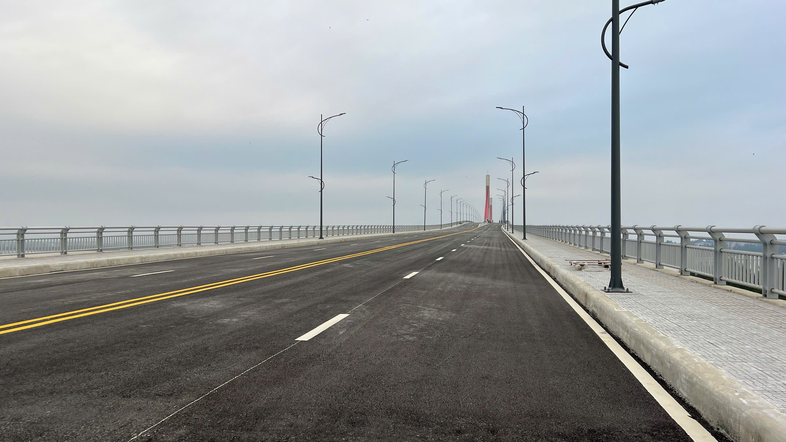 Đoạn hẹp nhất trên cầu vượt cửa biển có mặt cắt rộng 20 m với 4 làn xe, vỉa hè 2 bên. |