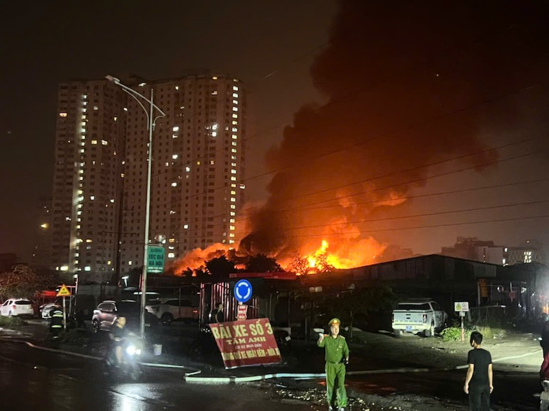 Vụ cháy xảy ra vào khoảng 23h40 ngày 29/3 tại xưởng gỗ đối diện bệnh viện K (cơ sở Tân Triều), phường Thanh Liệt, Hà Nội. Sau khi nhận thông tin, lực lượng Cảnh sát Phòng cháy, chữa cháy và cứu nạn cứu hộ (PCCC và CNCH), Công an TP Hà Nội đã điều động hàng chục xe chữa cháy cùng rất nhiều CBCS đến hiện trường xử lý đám cháy.