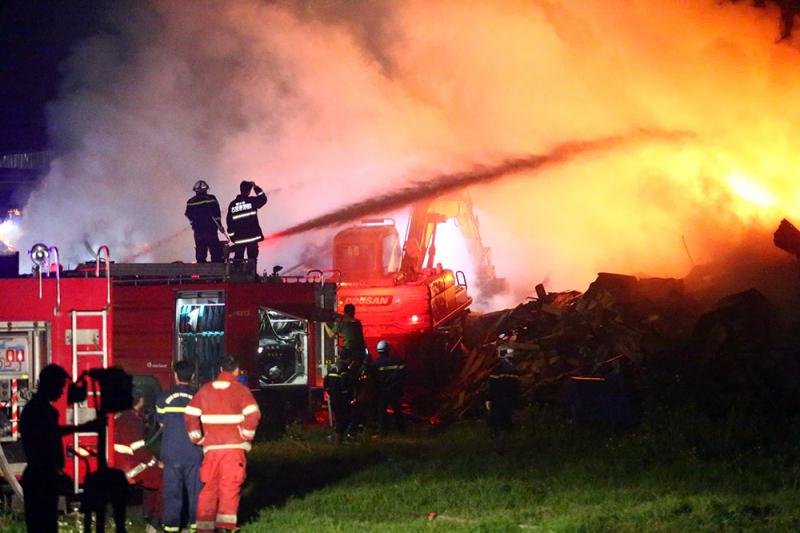 Đến 2h ngày 30/3, ngọn lửa dữ dội và cột khói bốc cao từ hiện trường khiến lực lượng chức năng phải căng mình, vất vả khống chế đám cháy.