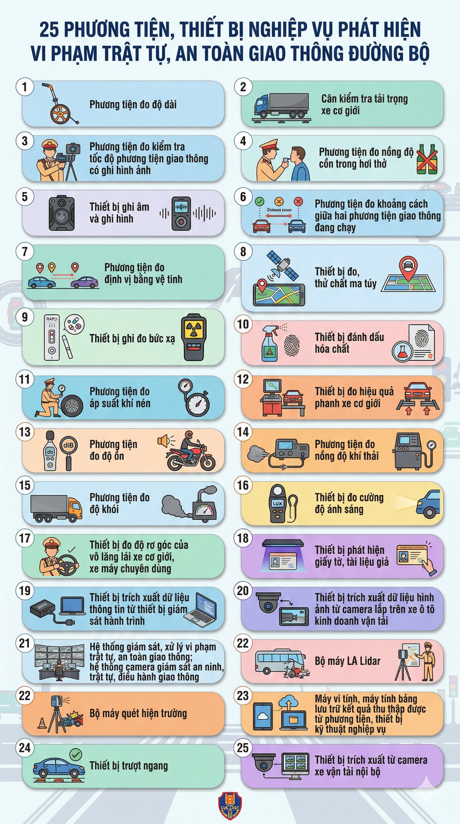 Danh mục 25 thiết bị mới bao phủ nhiều nhóm vi phạm trên đường bộ
