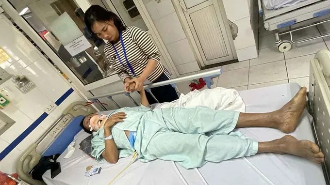 Ông Phạm Văn Hiển đang điều trị tại bệnh viện |