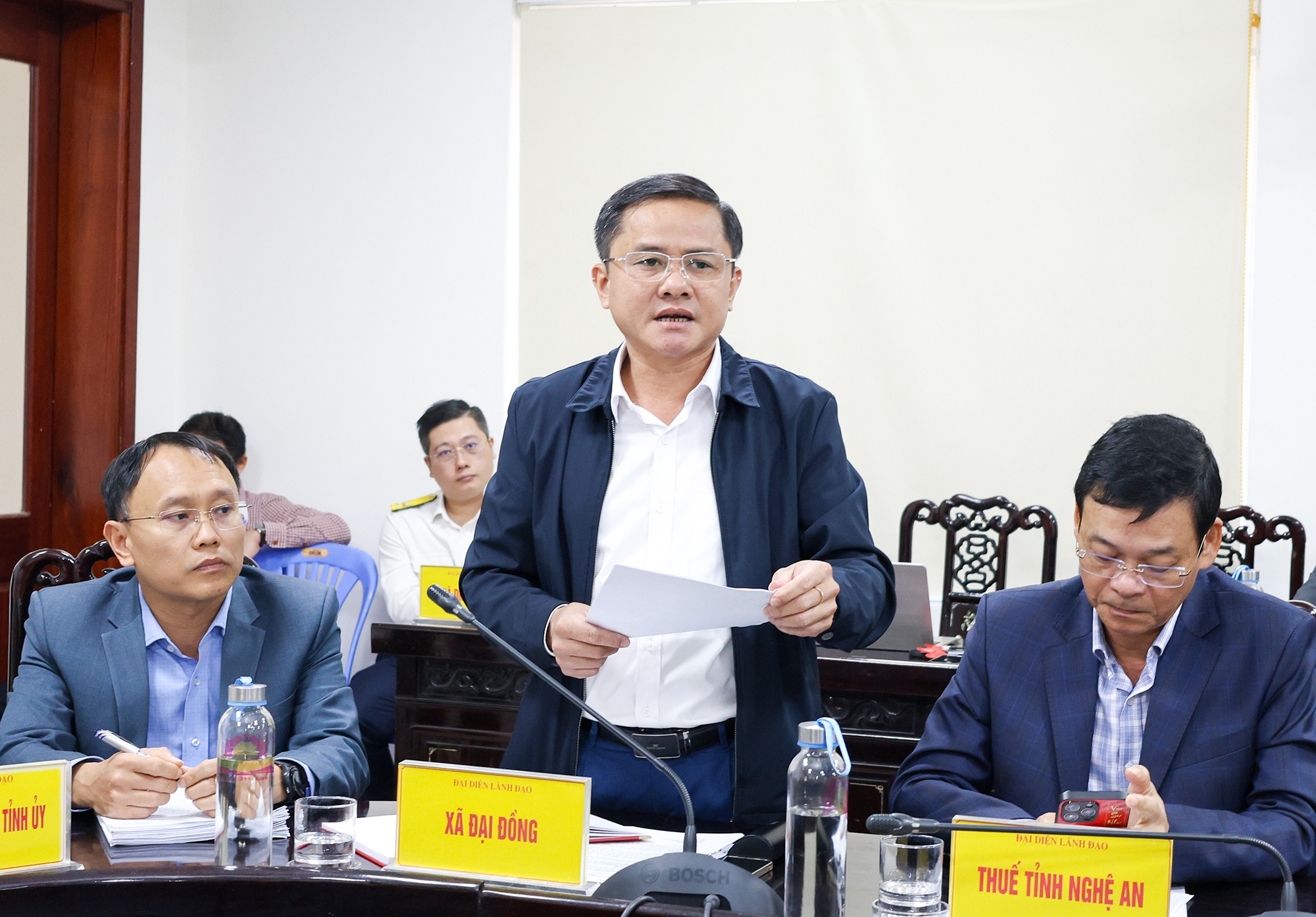 Tiếp đó, Chủ tịch UBND tỉnh Võ Trọng Hải tiếp ông Trần Xuân Hợi trú xóm Liên Trường, xã Đại Đồng. Ông Hợi kiến nghị UBND tỉnh chỉ đạo UBND xã Đại Đồng cấp Giấy chứng nhận quyền sử dụng đất (lần đầu) đối với thửa đất số 42, tờ bản đồ số 15 (Bản đồ đo đạc năm 2018), tại thôn 2A, xã Đại Đồng (khối 10, thị trấn Dùng cũ) cho gia đình ông, có nguồn gốc mua tài sản thanh lý của Xí nghiệp Thương binh may mặc Thanh Chương năm 2004 với số tiền 170 triệu đồng. Ông Hợi không đồng ý với trả lời của UBND xã Đại Đồng là thửa đất của ông chưa đủ điều kiện để được cấp Giấy chứng nhận quyền sử dụng đất.
