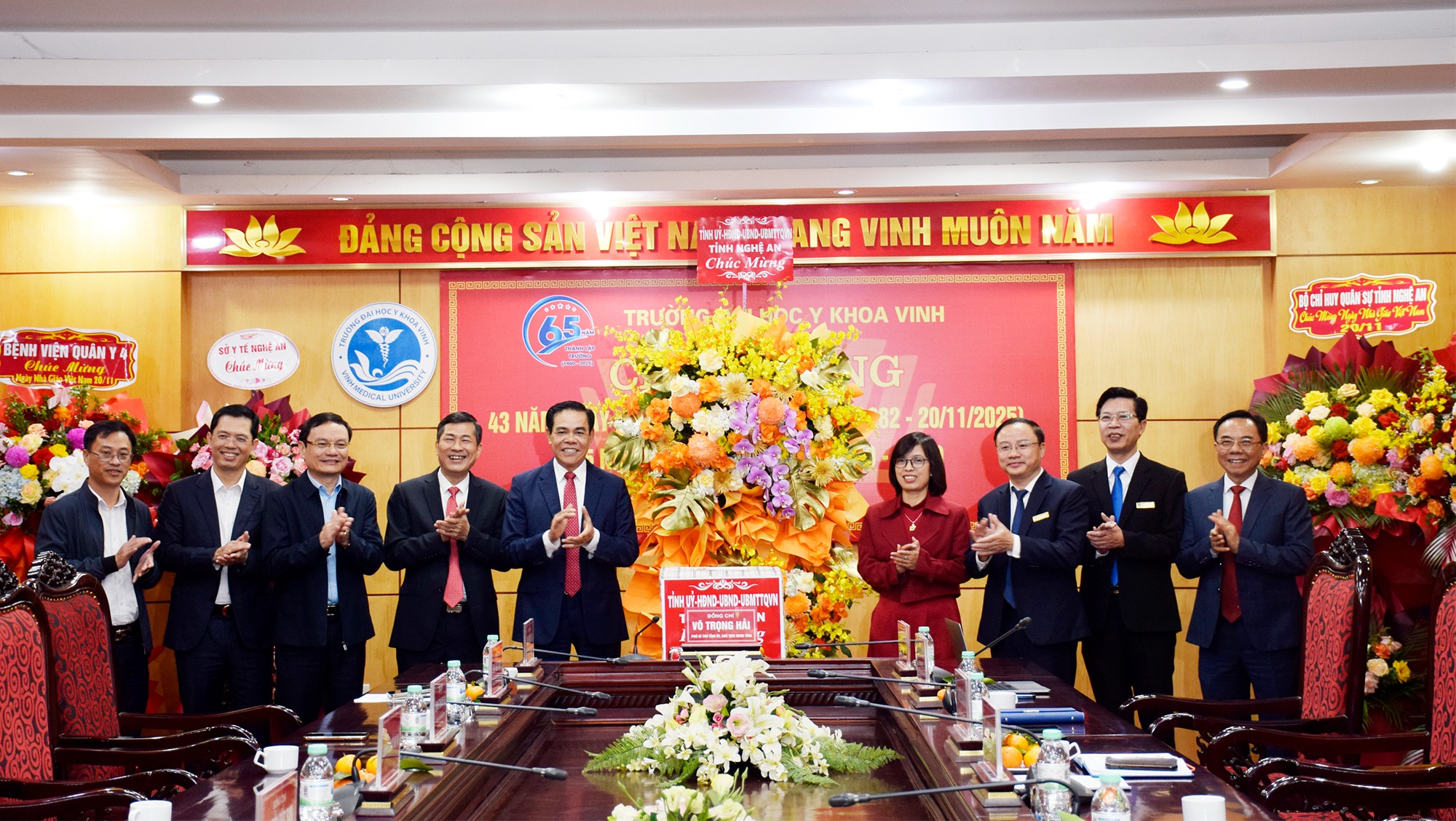 Lãnh đạo Trường Đại học Y khoa Vinh tham dự buổi chúc mừng |