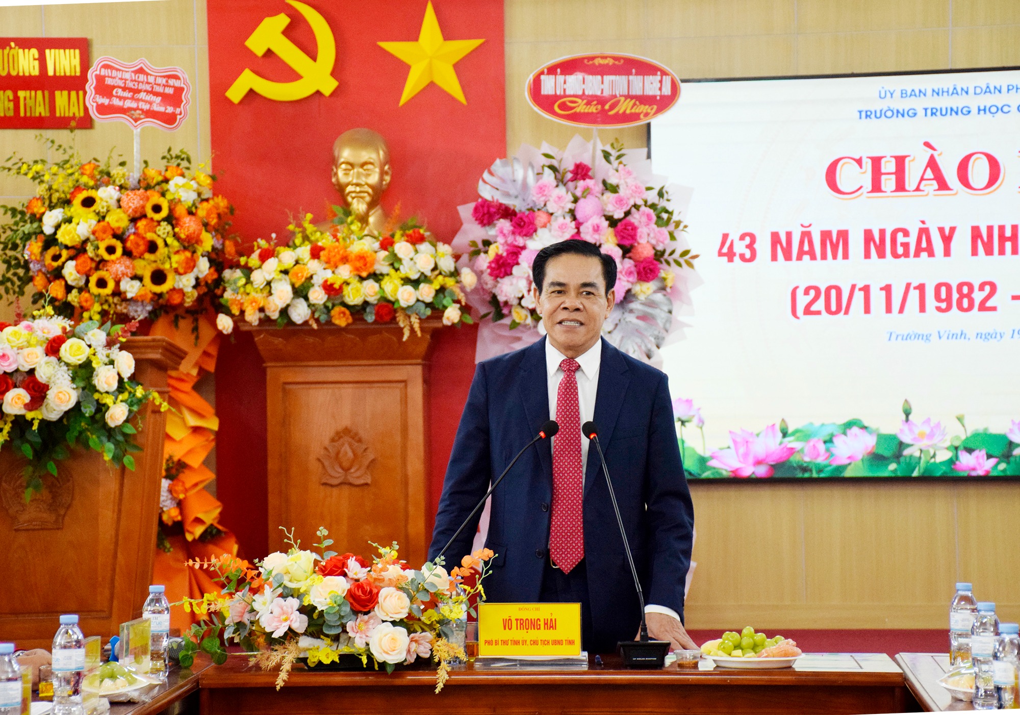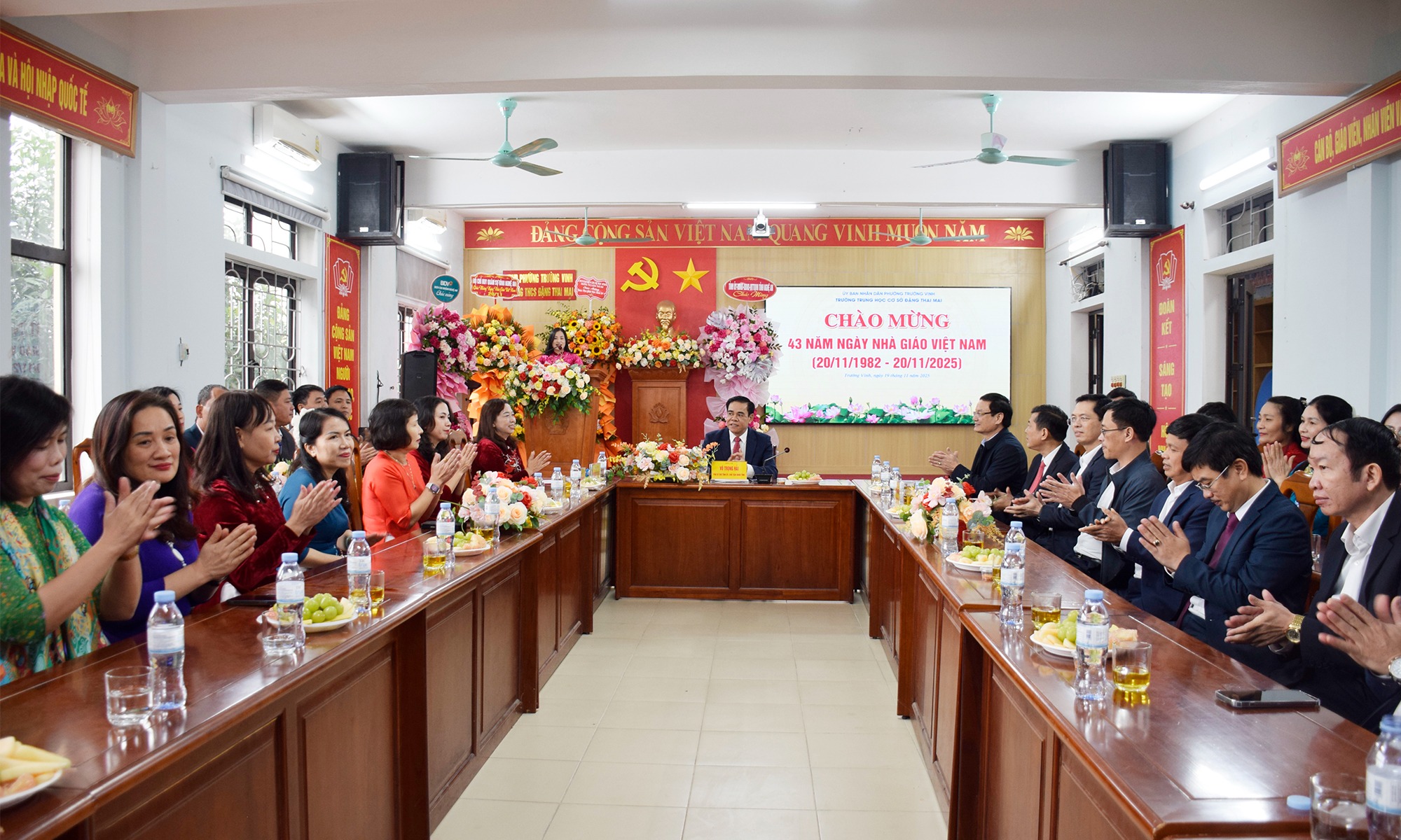 Gửi lời chúc mừng tốt đẹp tới đội ngũ giáo viên của Trường THCS Đặng Thai Mai, Chủ tịch UBND tỉnh Võ Trọng Hải mong muốn Nhà trường tiếp tục phát huy những thành quả đạt được, luôn giữ vững đoàn kết, thống nhất để xây dựng Trường ngày càng phát triển vững mạnh, phía tỉnh sẽ luôn quan tâm, tạo điều kiện để Trường thực hiện tốt nhiệm vụ của mình.