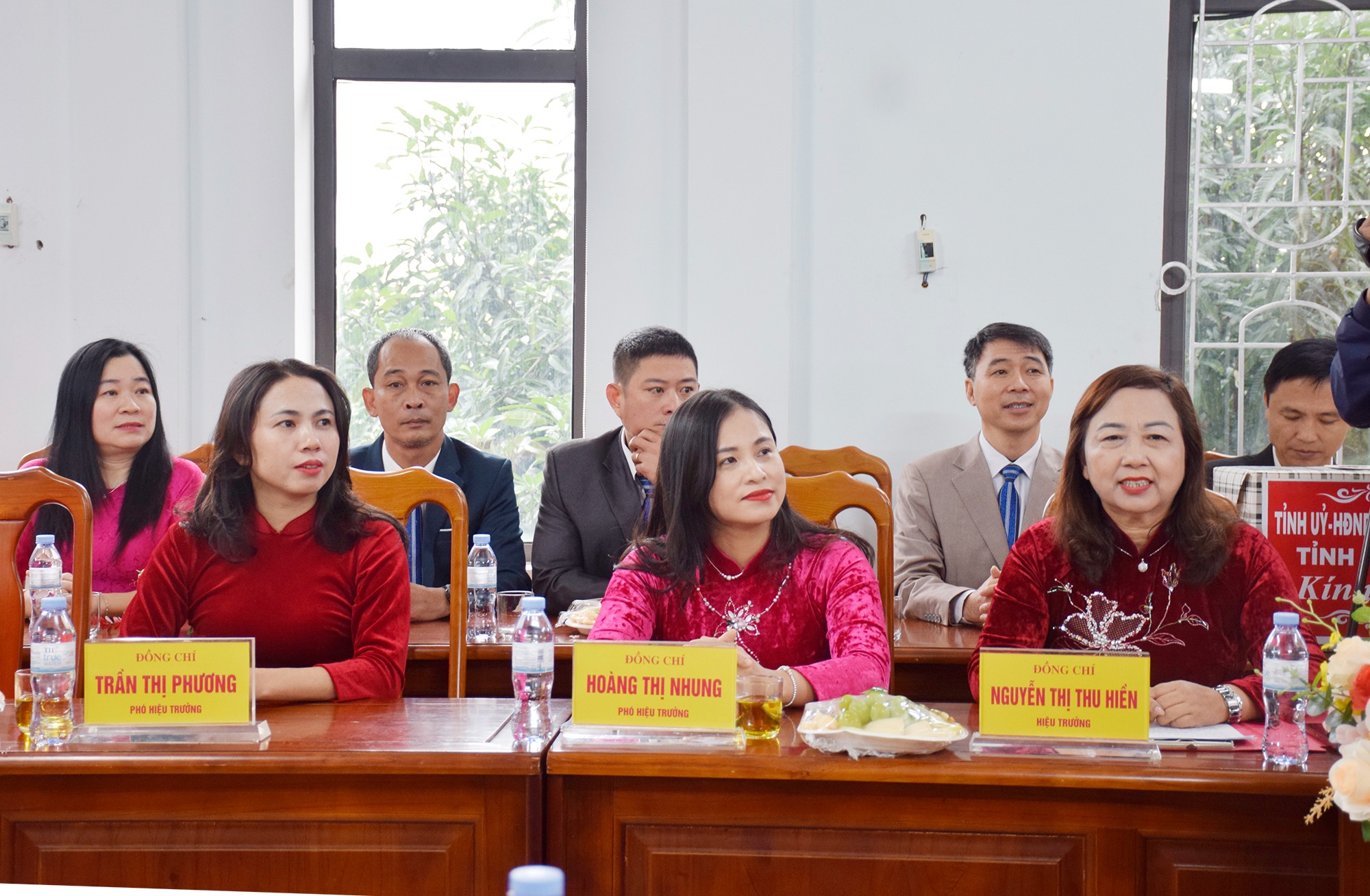 Các thầy, cô giáo Trường THCS Đặng Thai Mai vui mừng được đón đồng chí Chủ tịch UBND tỉnh cùng đoàn công tác của tỉnh tới chúc mừng Ngày Nhà giáo Việt Nam |