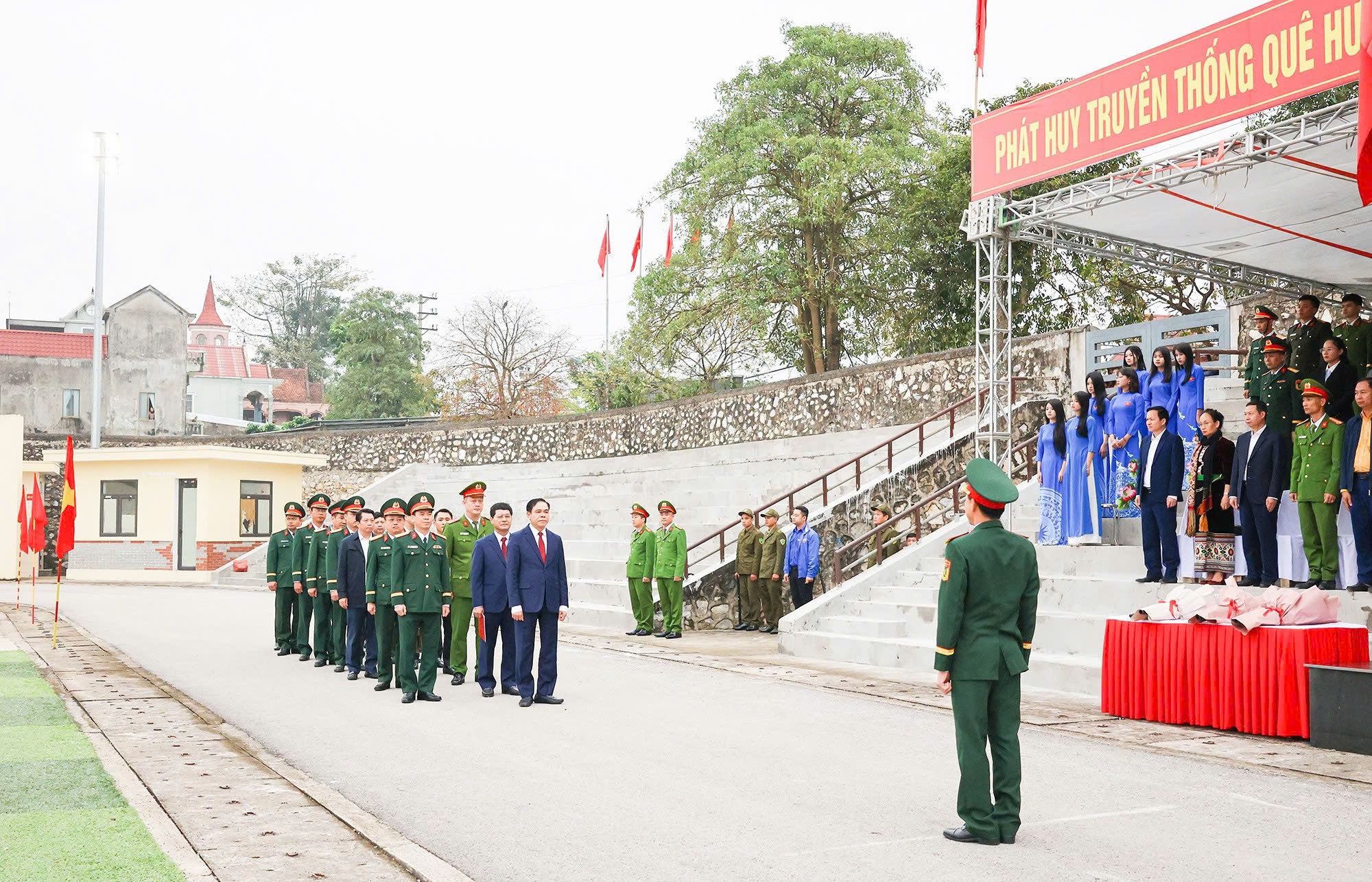 Chủ tịch UBND tỉnh Võ Trọng Hải cùng các đại biểu tham dự lễ giao, nhận quân năm 2026 tại Ban Chỉ huy Phòng thủ khu vực 3 - Quỳ Châu |