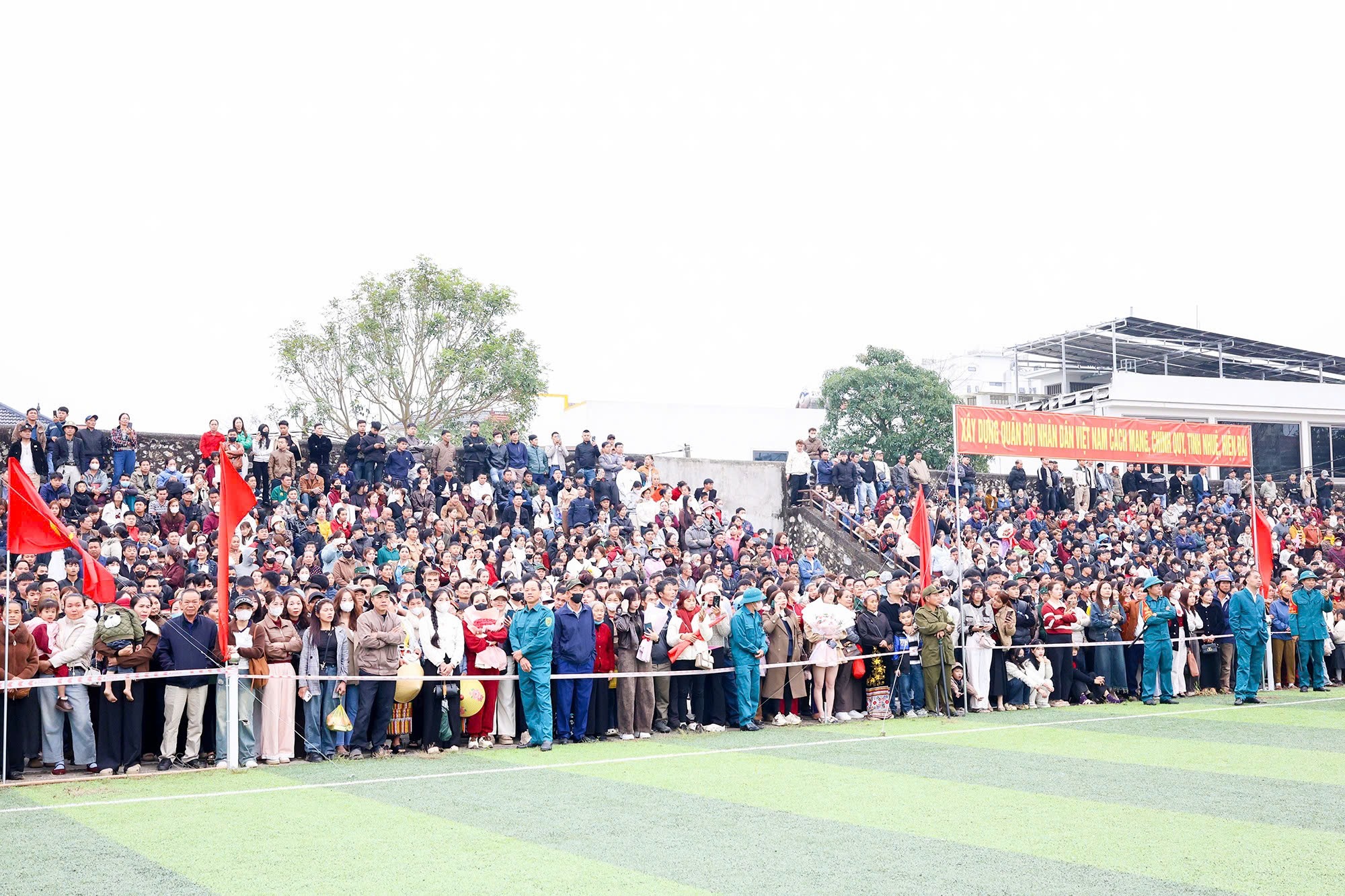 Đông đảo người dân có mặt từ sáng sớm để động viên các thanh niên lên đường nhập ngũ. |