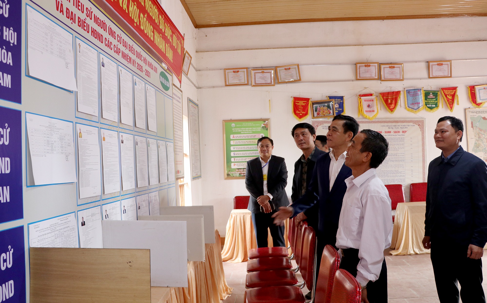 Trong sáng nay, Đoàn cũng đã kiểm tra công tác chuẩn bị bầu cử tại xã Nam Đàn. Toàn xã Nam Đàn có 23 điểm bầu cử với hơn 14.600 cử tri.