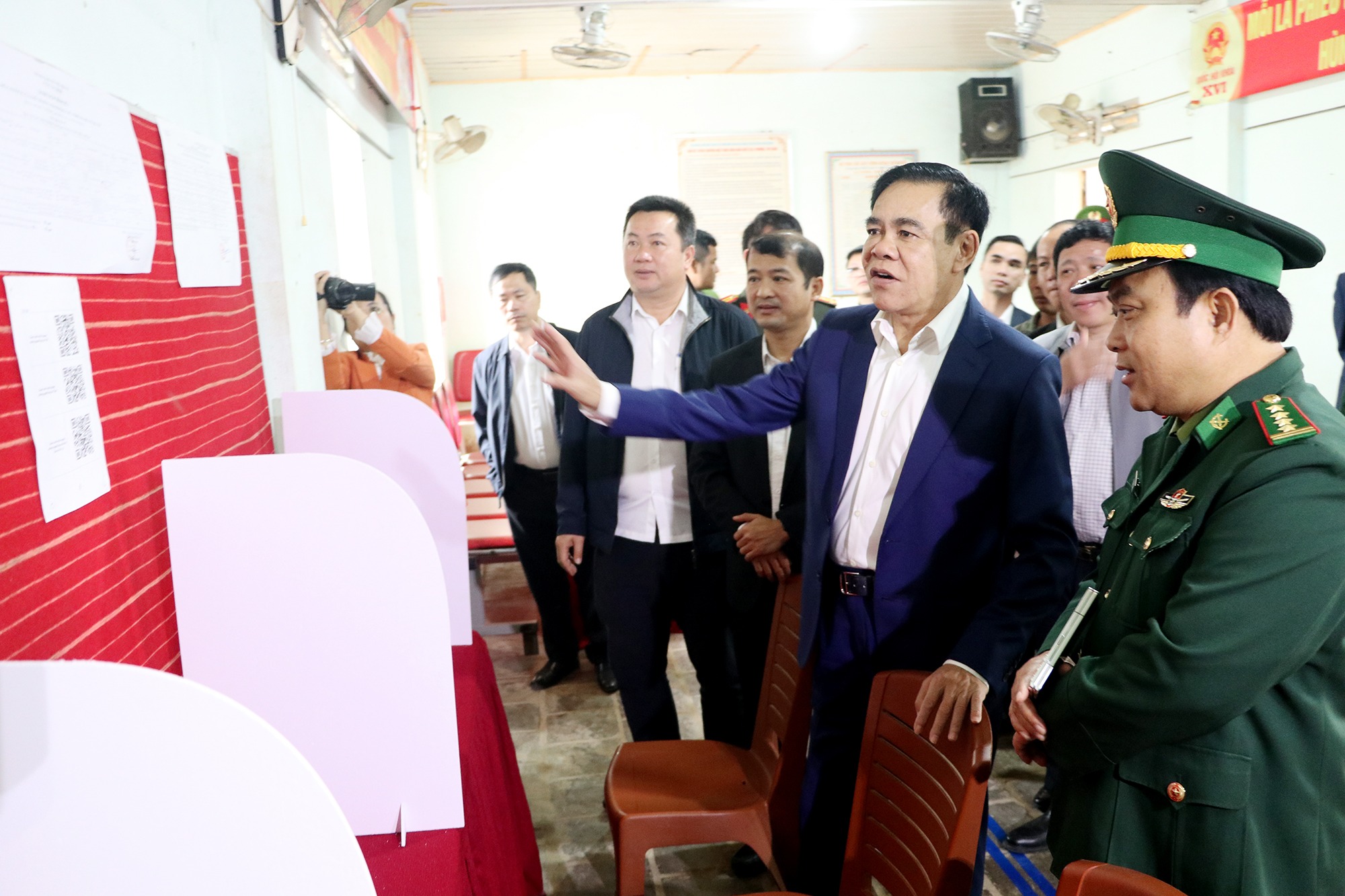 Chủ tịch UBND tỉnh Võ Trọng Hải kiểm tra khu vực bỏ phiếu tại Nhà văn hóa xóm Nam Thung, xã Vạn An |