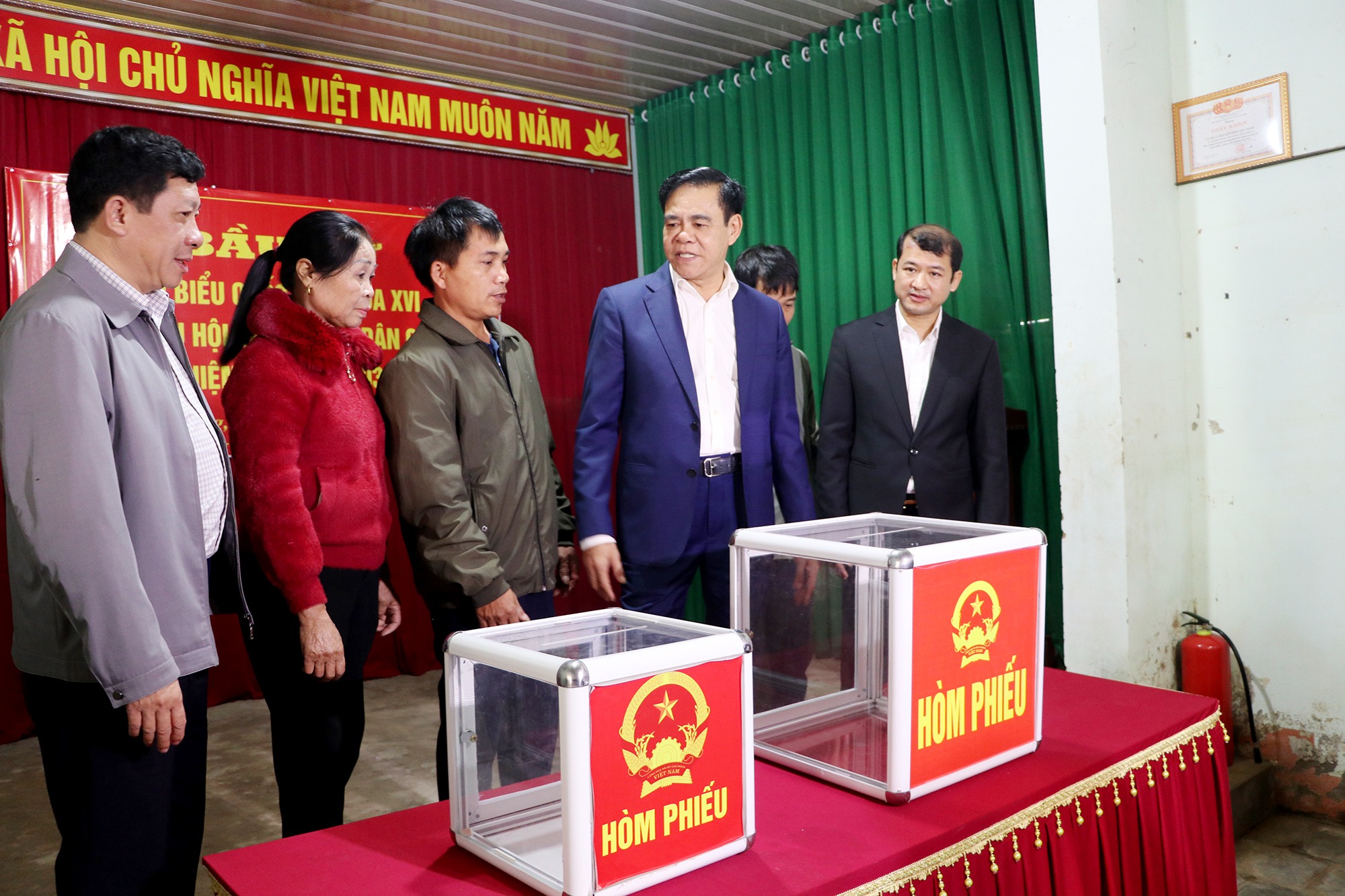 Chủ tịch UBND tỉnh Võ Trọng Hải kiểm tra điểm bầu cử tại Nhà văn hóa thôn Tiến Thành |