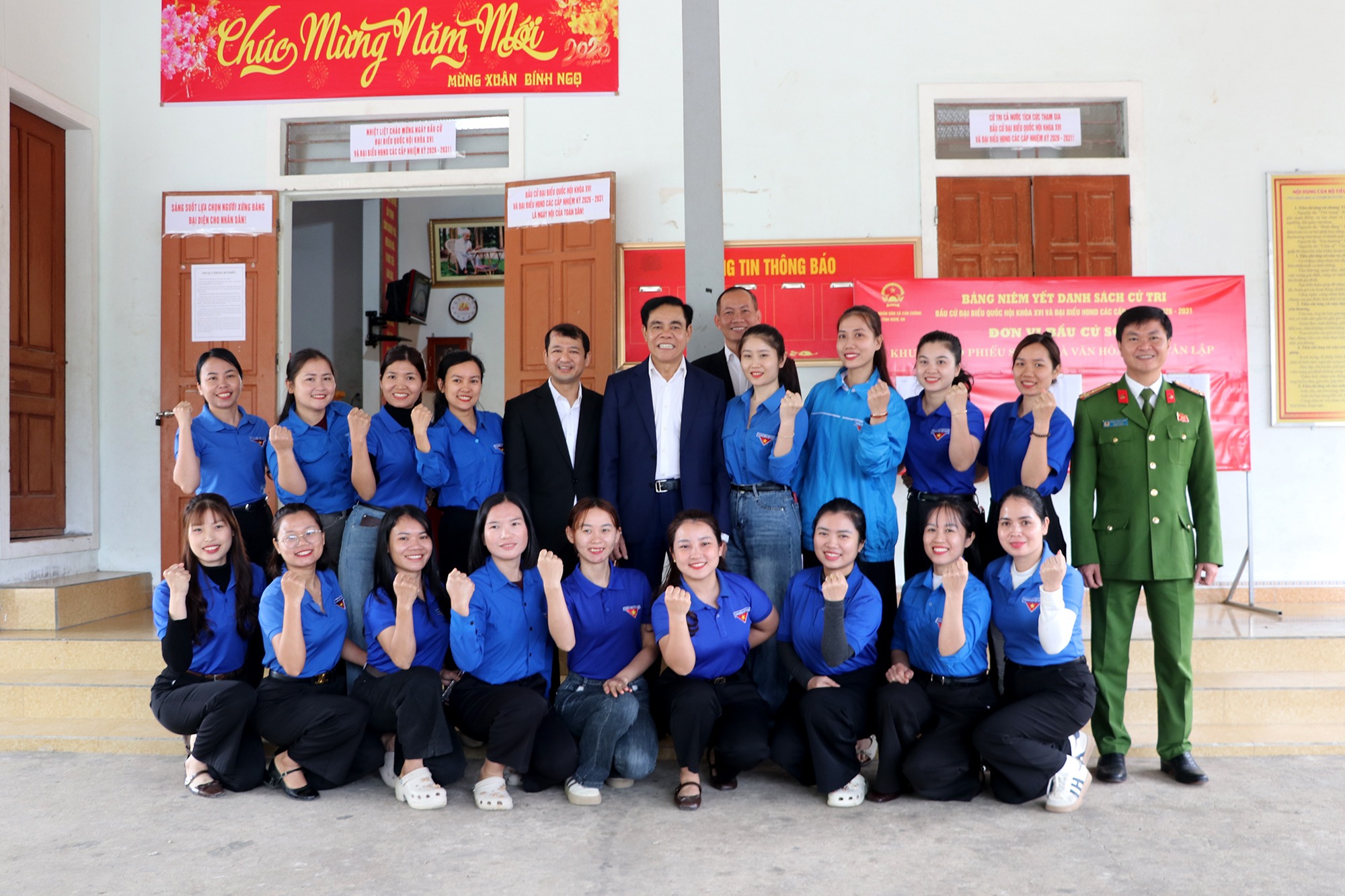 Lực lượng đoàn viên thanh niên thôn Tân Lập thể hiện quyết tâm trong việc góp phần tổ chức thanh công cuộc bầu cử |