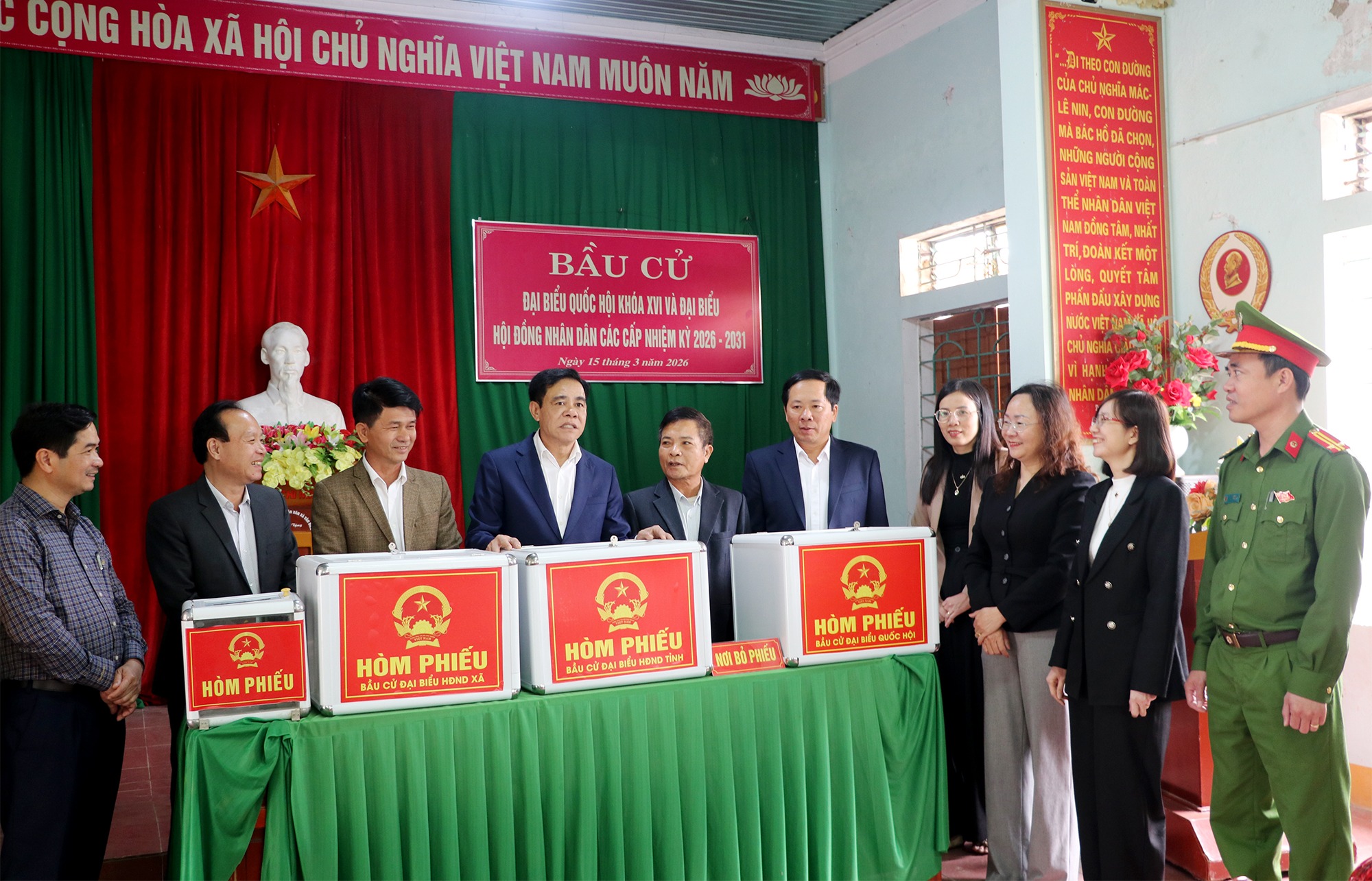 Lực lượng Công an xã phối hợp với các ban, ngành, đoàn thể tăng cường nắm tình hình địa bàn, kịp thời phát hiện, ngăn chặn các hành vi vi phạm pháp luật; đảm bảo an toàn các điểm bỏ phiếu, an toàn tài liệu, con dấu, hòm phiếu; không để xảy ra tình huống phức tạp, góp phần tổ chức cuộc bầu cử diễn ra an toàn, đúng quy định.
