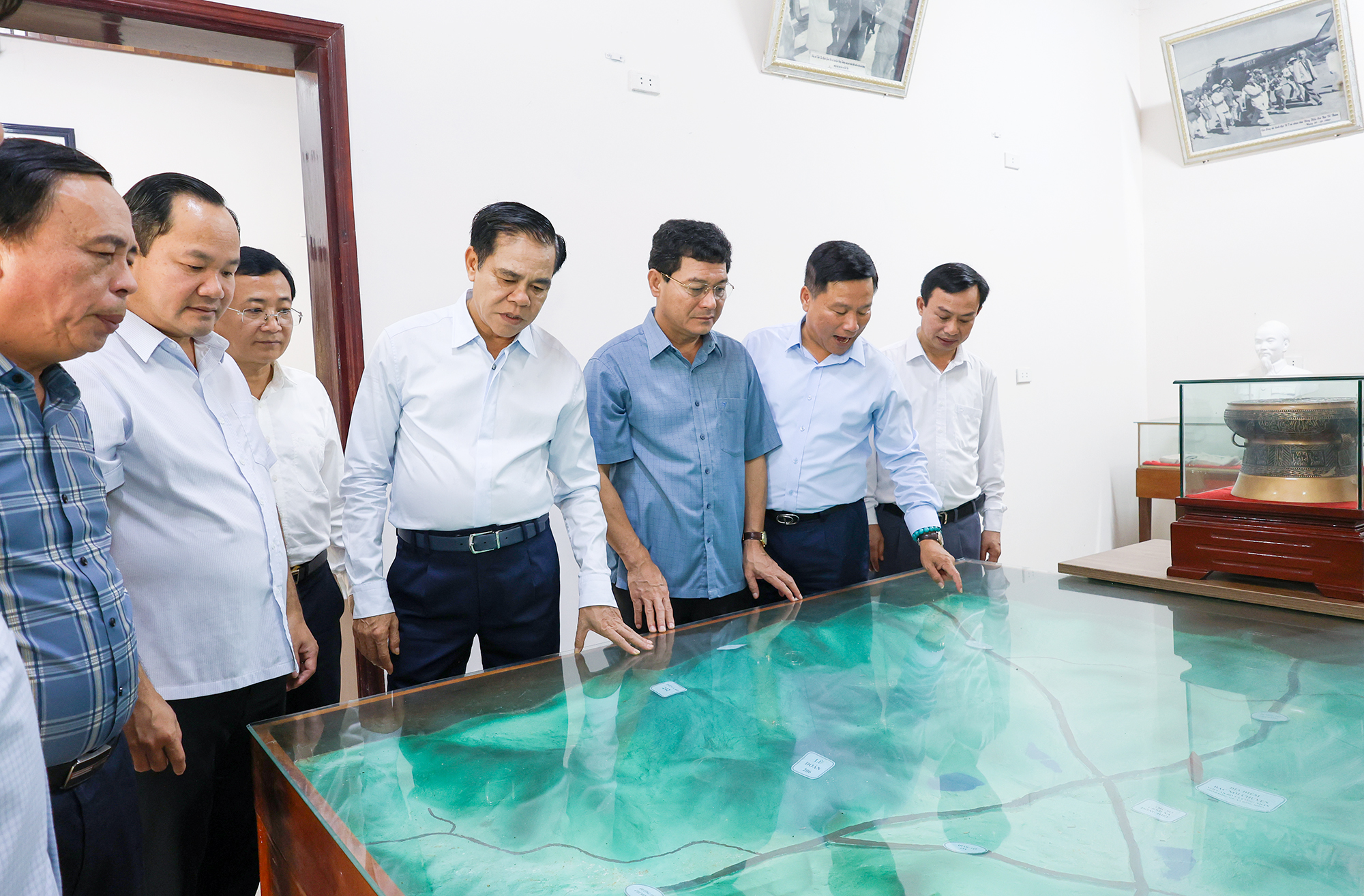 Chủ tịch UBND tỉnh Võ Trọng Hải và đoàn công tác thăm phòng trưng bày các hiện vật gắn liền với chuyến thăm Nông trường Đông Hiếu của Chủ tịch Hồ Chí Minh vào ngày 10/12/1961 |