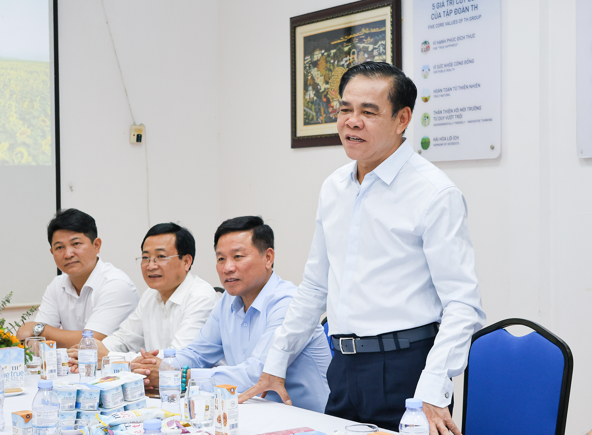 Chủ tịch UBND tỉnh Võ Trọng Hải đề nghị Tập đoàn cần tiếp tục phát huy tối đa những lợi thế sẵn có về công nghệ, quản trị và thị trường; không ngừng nghiên cứu mở rộng quy mô, đa dạng hóa danh mục sản phẩm để nâng cao năng lực cạnh tranh trên trường quốc tế. Song song với đó, lãnh đạo tỉnh mong muốn Tập đoàn TH tăng cường liên kết sâu rộng hơn với khu vực nông nghiệp địa phương, từ đó tạo ra giá trị gia tăng lớn hơn và thúc đẩy ngành nông nghiệp tỉnh nhà phát triển theo hướng bền vững.