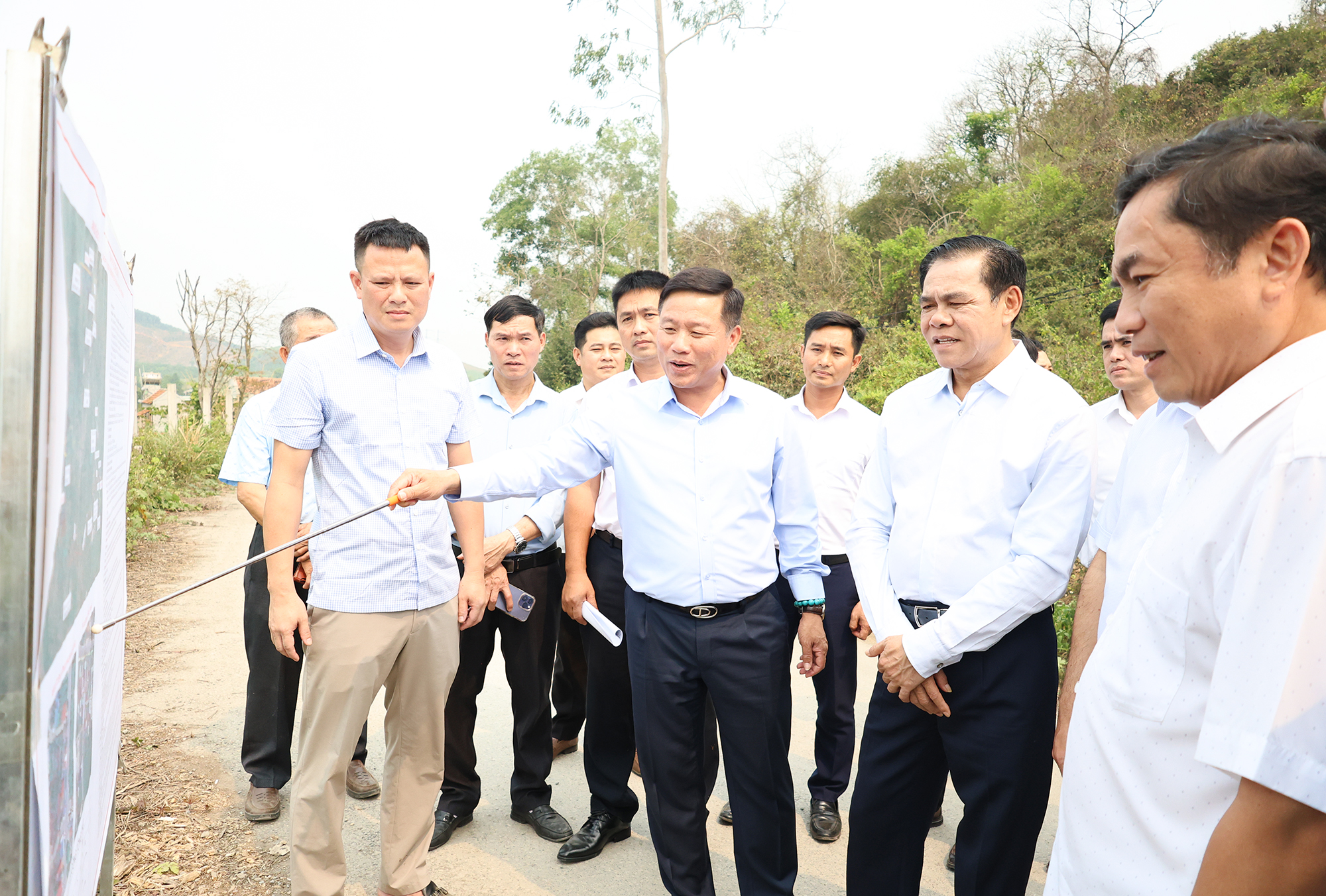 Tại khu vực các xã Nghĩa Lâm và Nghĩa Đàn, đoàn công tác kiểm tra dự án đường vào vùng nguyên liệu phục vụ chăn nuôi bò sữa của Tập đoàn TH. Dự án có quy mô 5 tuyến đường với tổng chiều dài 21,82 km và tổng vốn đầu tư 95.000 triệu đồng. Đến nay, dự án đã được bố trí 93 tỷ đồng và giải ngân được 78 tỷ đồng, tương đương 83,87% kế hoạch. Về mặt bằng, đơn vị thi công đã vận động nhân dân hiến đất được 20,6 km, các vị trí còn lại đang tiếp tục được vận động để bàn giao trước ngày 30/6/2026. Tổng giá trị thi công thực tế hiện đạt 70,409 tỷ đồng, chiếm 86,64% khối lượng.