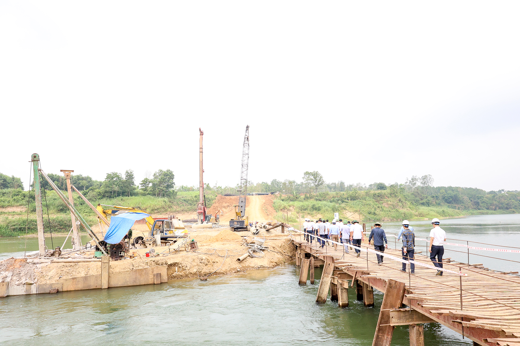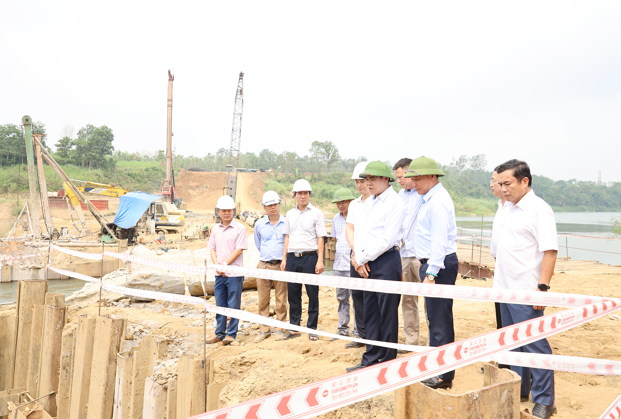 Chủ tịch UBND tỉnh Võ Trọng Hải và đoàn công tác kiểm tra tiến độ tại công trường thi công cầu Hiếu III nối phường Thái Hòa và phường Tây Hiếu |