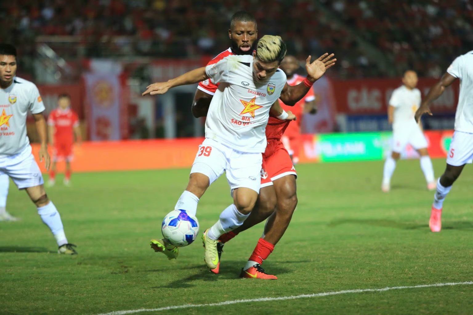 Trận đấu giữa Hải Phòng và Hà Tĩnh ở vòng 8 V.League gây bức xúc cho cổ động viên Hà Tĩnh và ban huấn luyện (Ảnh VPF) |