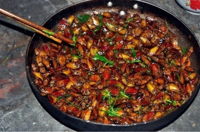 Bọ xít chiên giòn được xem như món đặc sản riêng có của người Thái ở Tây Bắc. Ảnh: Trang Gái Bản |