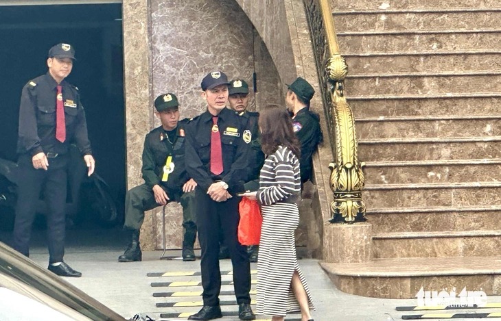 Trong đó, một số chiến sĩ cảnh sát túc trực trước cửa ra vào.
