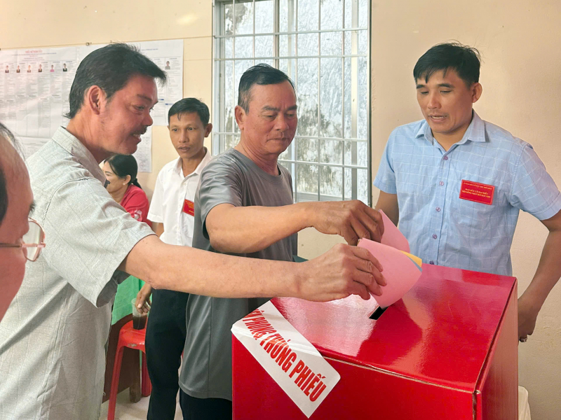 Cử tri trên địa bàn đặc khu Thổ Châu phấn khởi bỏ phiếu bầu. |