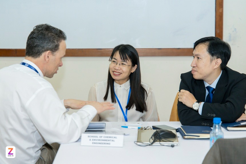 Giảng viên đại học tại TP.HCM trong buổi làm việc với các giảng viên đại học Mỹ. Ảnh: Phương Lâm. |