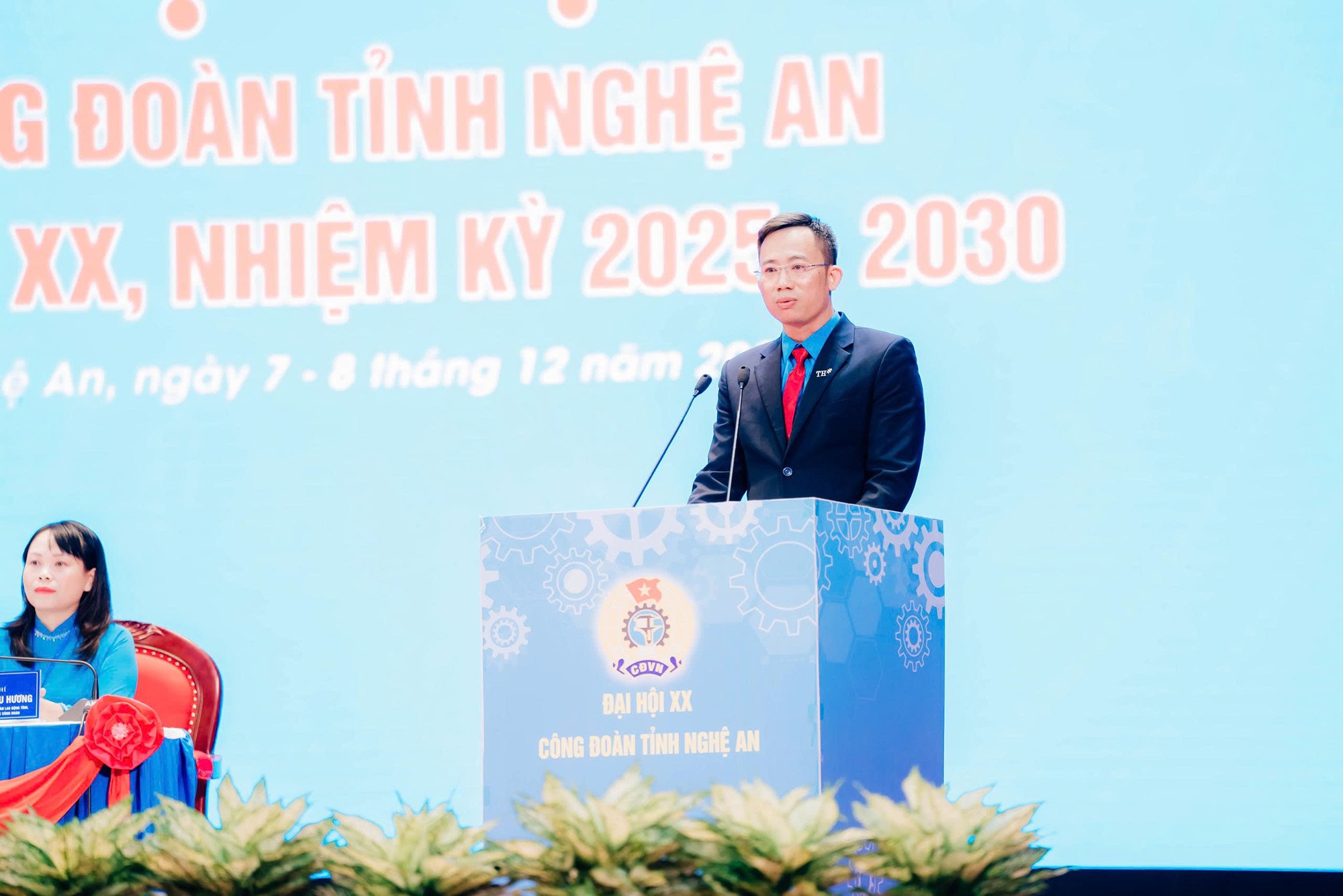 Thay mặt Tổng Liên đoàn Lao động Việt Nam, Phó Chủ tịch Tổng Liên đoàn Việt Nam Nguyễn Xuân Hùng biểu dương tinh thần đoàn kết, nỗ lực, đổi mới, sáng tạo của các cấp công đoàn Nghệ An và những thành quả nổi bật đạt được trong nhiệm kỳ qua. Lãnh đạo Tổng Liên đoàn đã gợi mở một số vấn đề để Đại hội thảo luận, làm sâu sắc thêm chủ đề, mục tiêu, và nhiệm vụ nhiệm kỳ tới. Đó là, cần phải đổi mới phương thức lãnh đạo, chỉ đạo, đây là yêu cầu cấp thiết trong bối cảnh không còn công đoàn cấp trên trực tiếp cơ sở. Cần có cơ chế vận hành linh hoạt, chặt chẽ và chuyên nghiệp hơn để đảm bảo thông suốt trong triển khai nhiệm vụ. Cùng với đó, tăng cường đào tạo, bồi dưỡng và huấn luyện cán bộ công đoàn, đặc biệt là đội ngũ cán bộ công đoàn cơ sở; cần tập trung nâng cao kỹ năng nghiệp vụ (như thương lượng tập thể, giải quyết tranh chấp lao động) và tăng cường bản lĩnh chính trị.