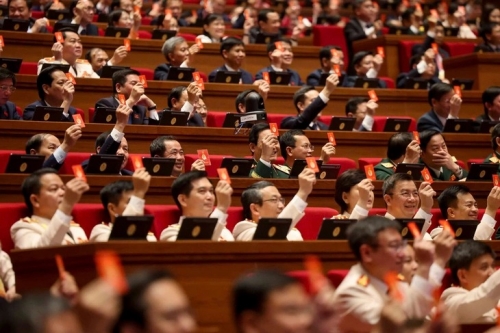 Đại biểu tham dự Đại hội biểu quyết các nội dung tại phiên trù bị Đại hội XIV của Đảng - Ảnh: NGUYỄN KHÁNH |