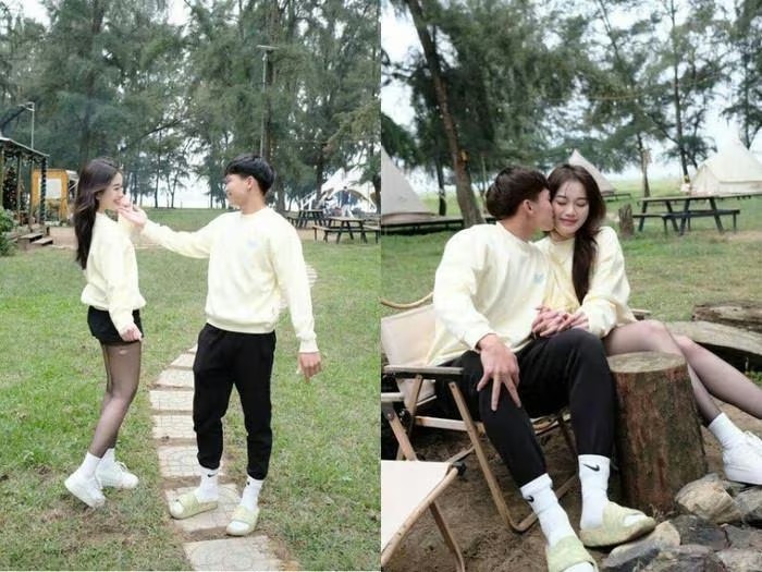 Vợ chồng cầu thủ Hồ Văn Cường - Nguyễn Linh ở Nghệ An. |