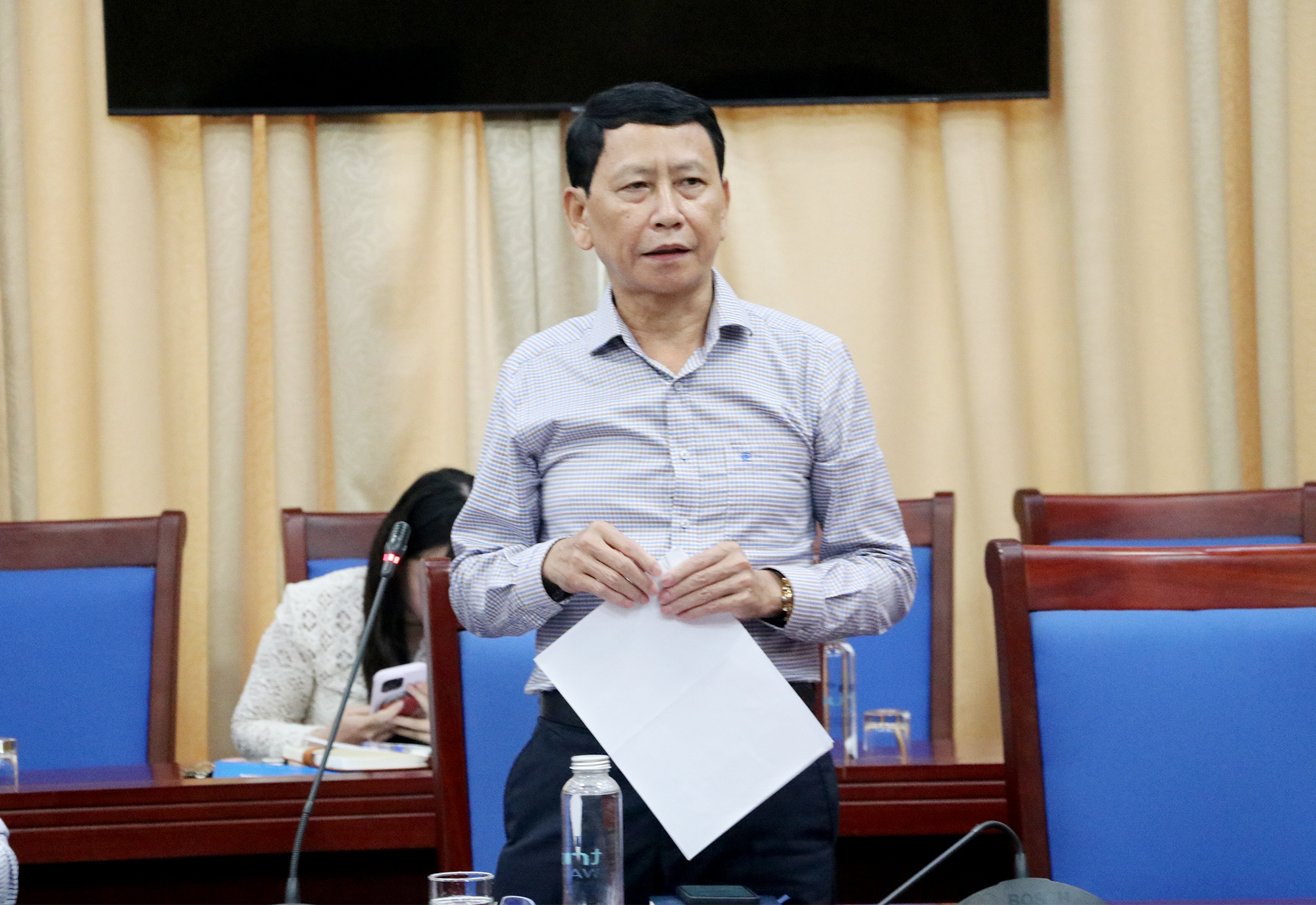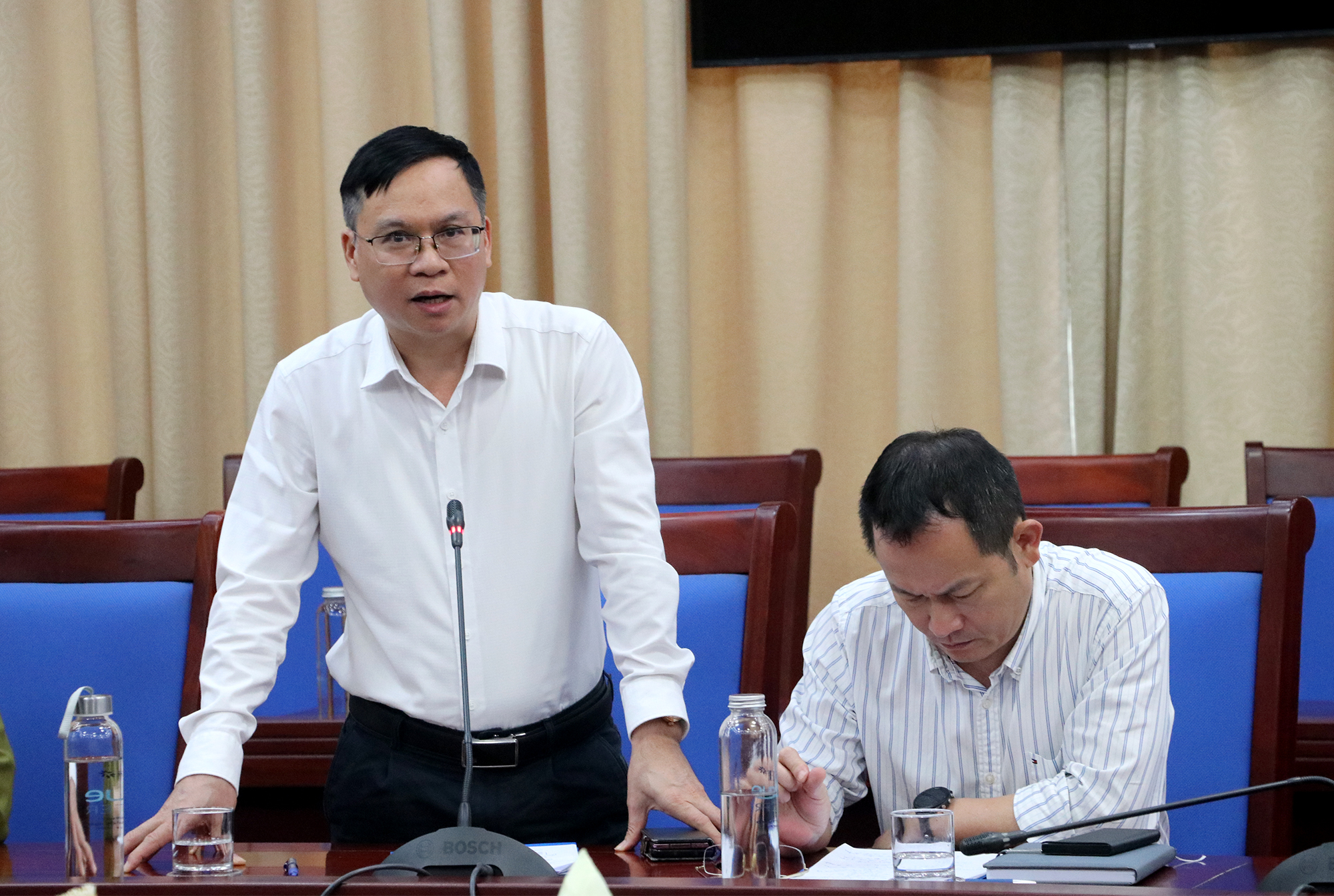 Phó Trưởng Ban Quản lý Khu kinh tế Đông Nam Nguyễn Mạnh Lợi thông tin về kết quả phối hợp giám sát thực hiện chính sách lao động tại các doanh nghiệp trong Khu kinh tế; việc tổ chức các phong trào văn hóa, văn nghệ; an sinh xã hội, chăm lo đời sống người lao động |