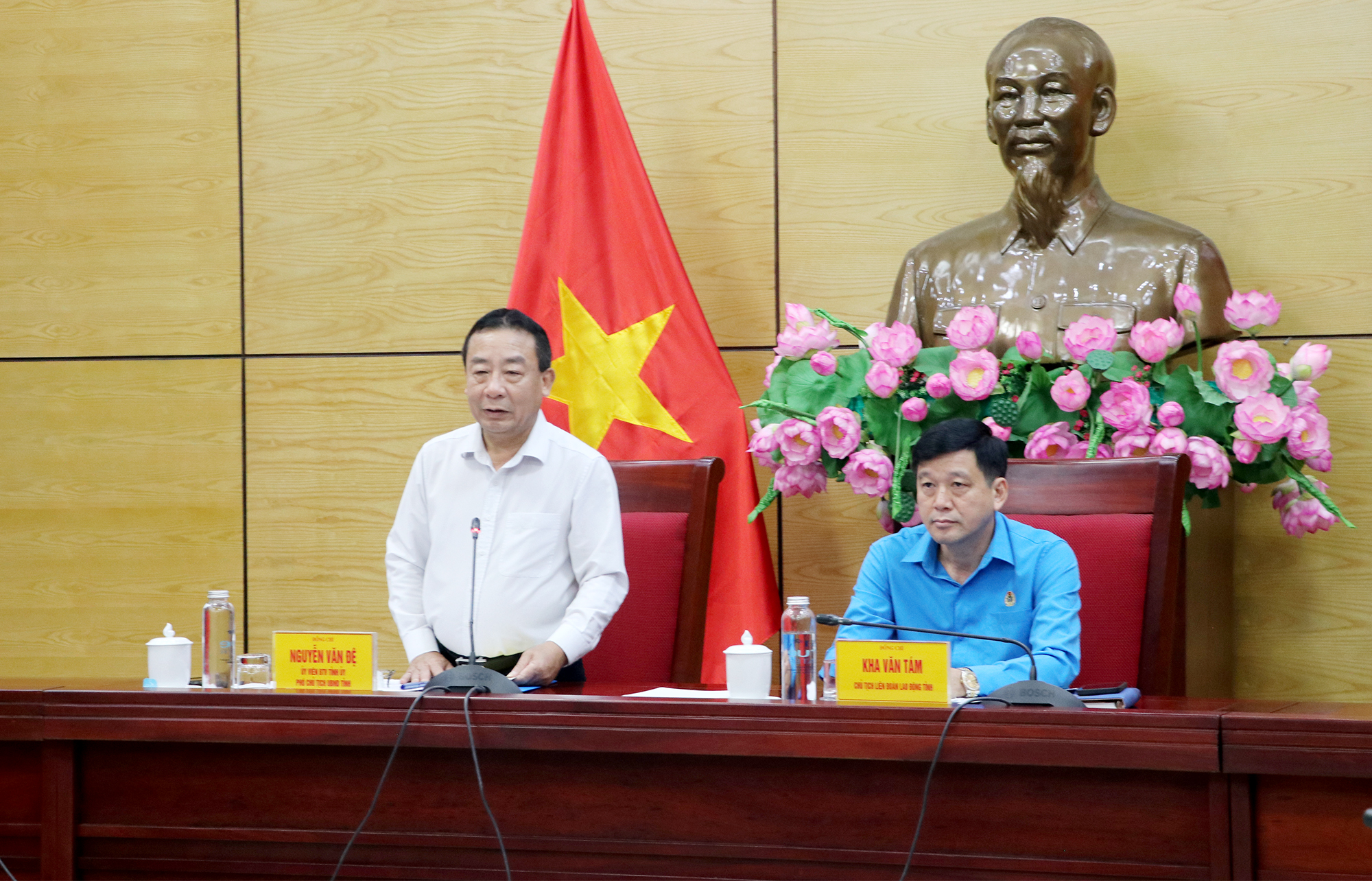 Chủ tịch Liên đoàn Lao động tỉnh Kha Văn Tám phát biểu |