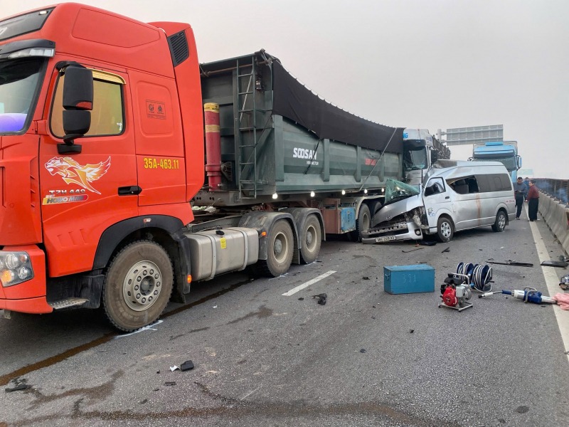 Như đã thông tin, khoảng 3h40 ngày 14/1, tại km 334+300 tuyến cao tốc Mai Sơn – Quốc lộ 45, thuộc địa phận thôn Nhạ Lọc, xã Đồng Tiến, tỉnh Thanh Hóa, xe ô tô khách biển kiểm soát 38C-229.33 do anh Phan Văn Trường (SN 1986, trú tại thôn Trại Tiểu, xã Đồng Lộc, tỉnh Hà Tĩnh) điều khiển, lưu thông theo hướng Nghệ An – Hà Nội, trên xe chở theo 11 người, đã va chạm với xe ô tô tải ben biển kiểm soát 35A-463.11 kéo theo rơ móc biển kiểm soát 35RM-005.20 do anh Bùi Văn Hồi (SN 1990, trú tại thôn Vệ Chùa, xã Phú Sơn, tỉnh Ninh Bình) điều khiển, đang dừng đỗ phía trước.