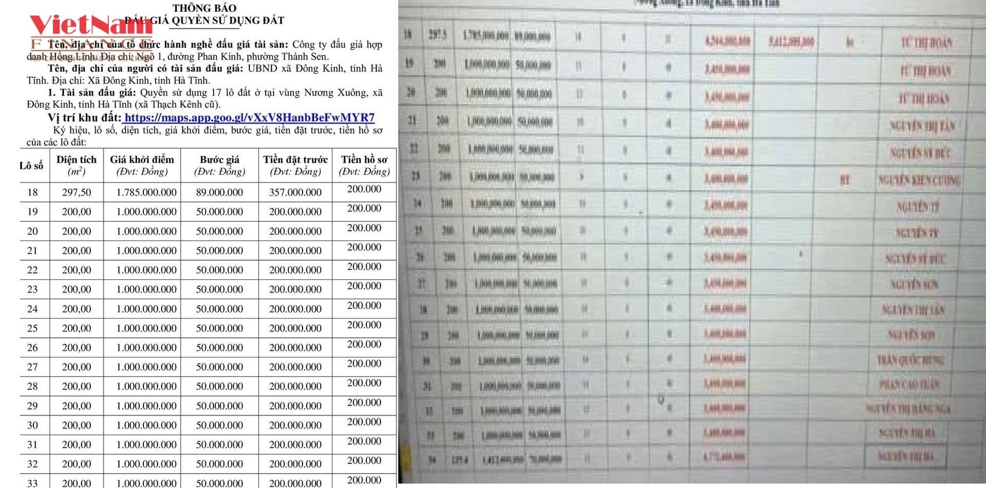 Diễn biến nóng không chỉ dừng lại ở lô số 18. Các lô liền kề từ số 19 đến 33, mỗi lô diện tích 200m2, giá khởi điểm khoảng 1 tỷ đồng, cũng ghi nhận mức trúng dao động 3,4 – 3,45 tỷ đồng/lô, tương đương khoảng 17 triệu đồng/m2. Riêng lô số 19 cũng do bà Hoán trúng đấu với mức 3,45 tỷ đồng. Theo ghi nhận, nhiều lô phải trải qua 30–40 bước giá mới xác định người sở hữu, phản ánh sức nóng của thị trường và tâm lý cạnh tranh lớn của người tham gia.
