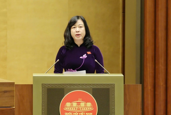 Bộ trưởng Bộ Y tế Đào Hồng Lan trình bày tờ trình trước Quốc hội. Ảnh: Phạm Thắng