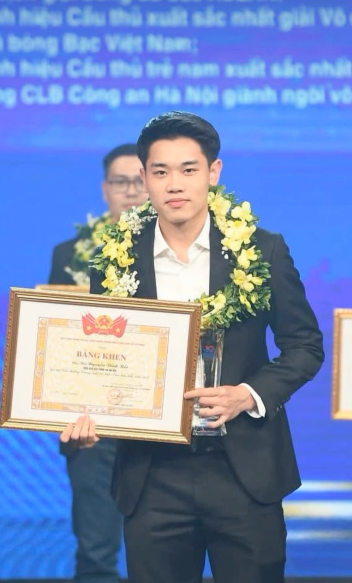 Cầu thủ Nguyễn Đình Bắc được vinh danh Gương mặt trẻ Việt Nam tiêu biểu năm 2025 (Ảnh: FBNV)