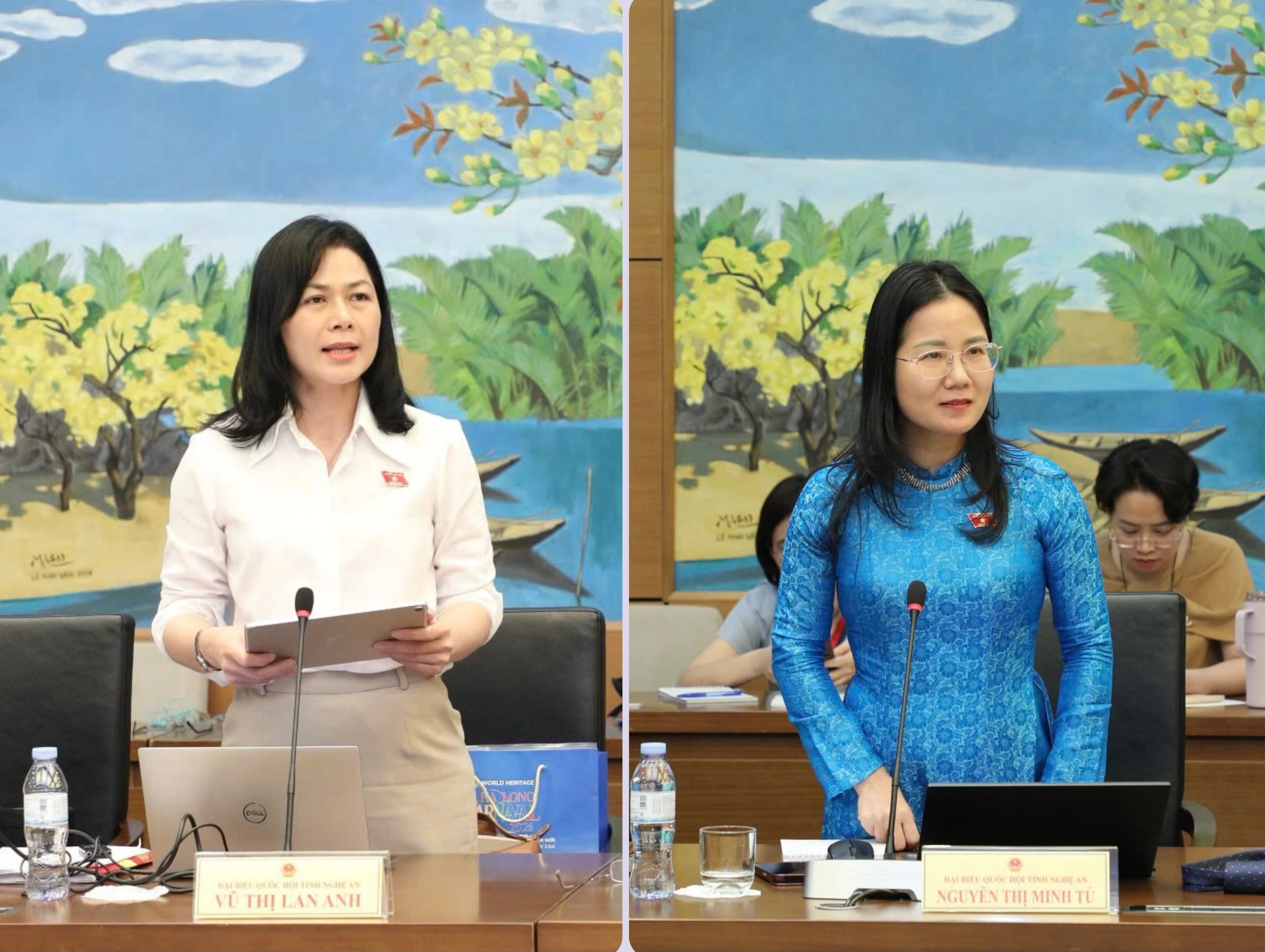 ĐBQH Vũ Thị Lan Anh và ĐBQH Nguyễn Thị Minh Tú phát biểu tại Tổ. Ảnh: Khánh Duy |